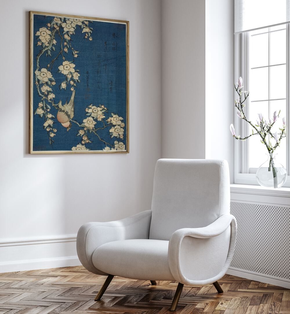 Immerse yourself in the captivating beauty of Japanese tradition with our exquisite art piece, Bullfinch and Weeping Cherry Blossoms by the renowned artist Katsushika Hokusai. This stunning painting is a testament to Hokusai's mastery and his ability to encapsulate nature's essence in a breathtaking manner.