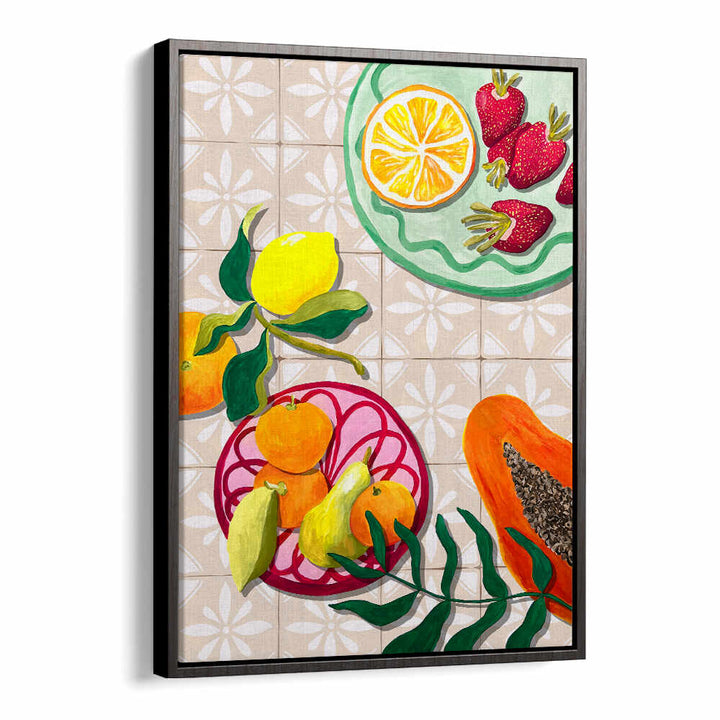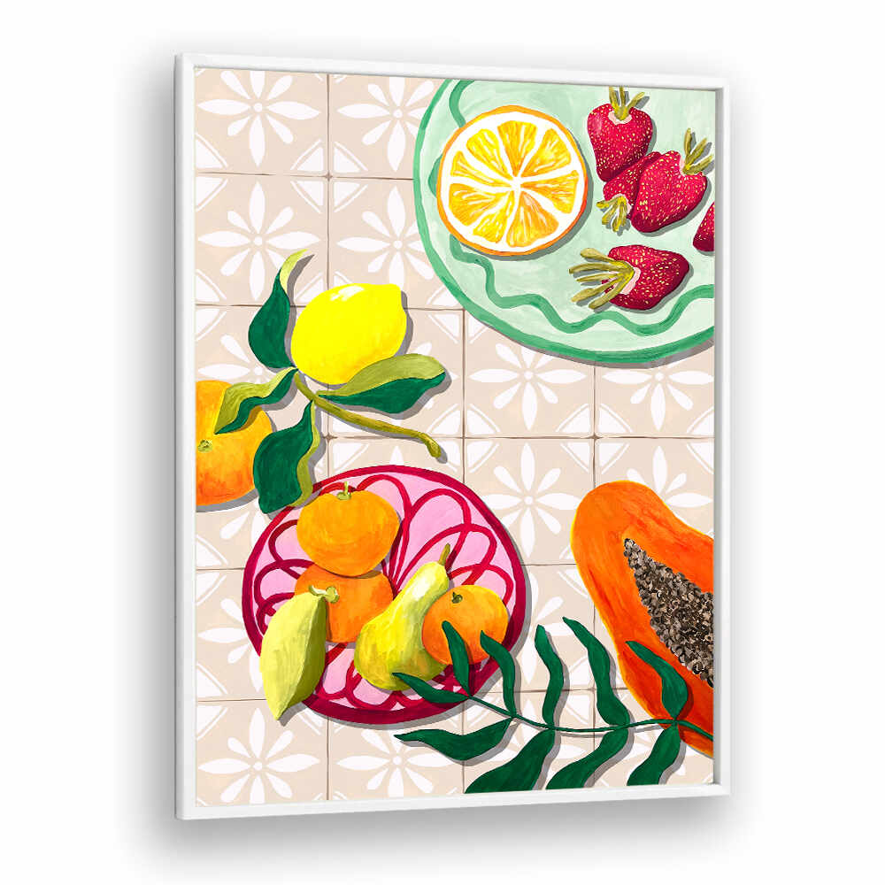 Bring a moment of still-life charm to meal prep, brunch, or coffee breaks with this unique piece that celebrates the beauty of fruit and handmade ceramics. Elevate your space with artwork that pairs everyday joy with timeless design.