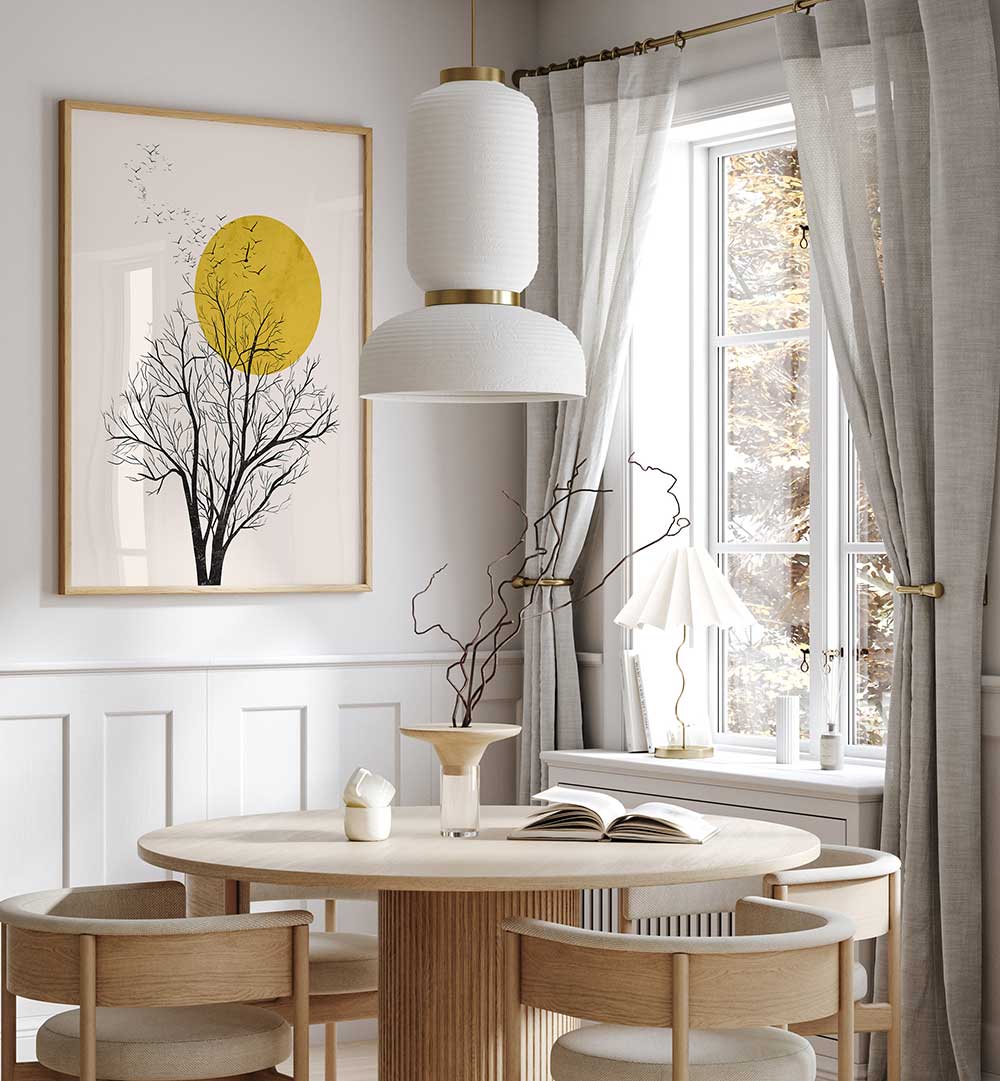 - Timeless subject matter that pairs naturally with natural materials like wood, linen, and stone accents.
