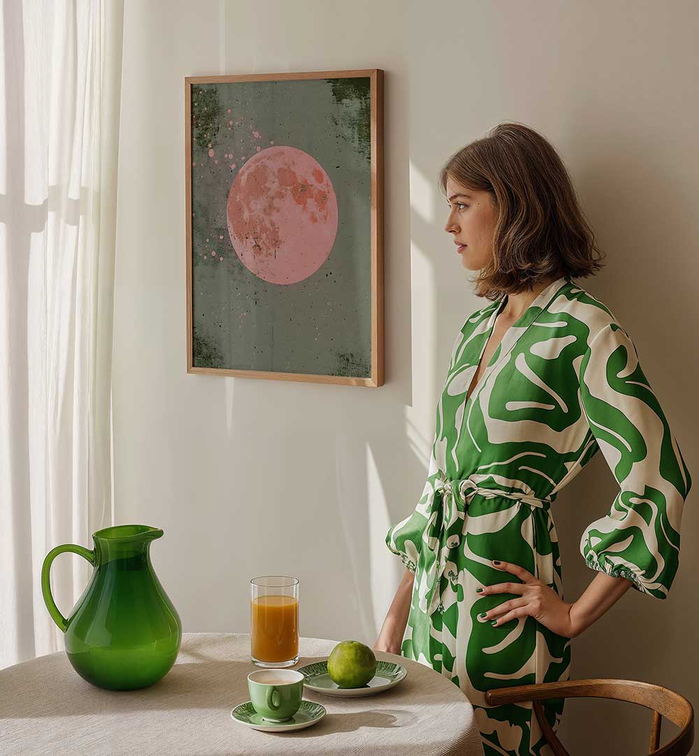 Designed for contemporary interiors, this series doubles as landscape wall art for living rooms, bedrooms, hallways, or offices. The pink moon motif against expansive landscapes creates a distinctive, gallery-worthy statement while remaining versatile enough to complement a range of color schemes and decor styles.