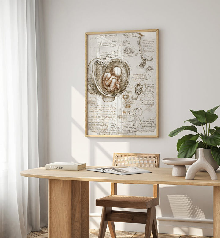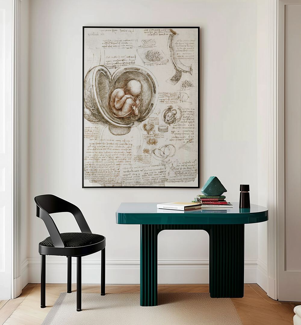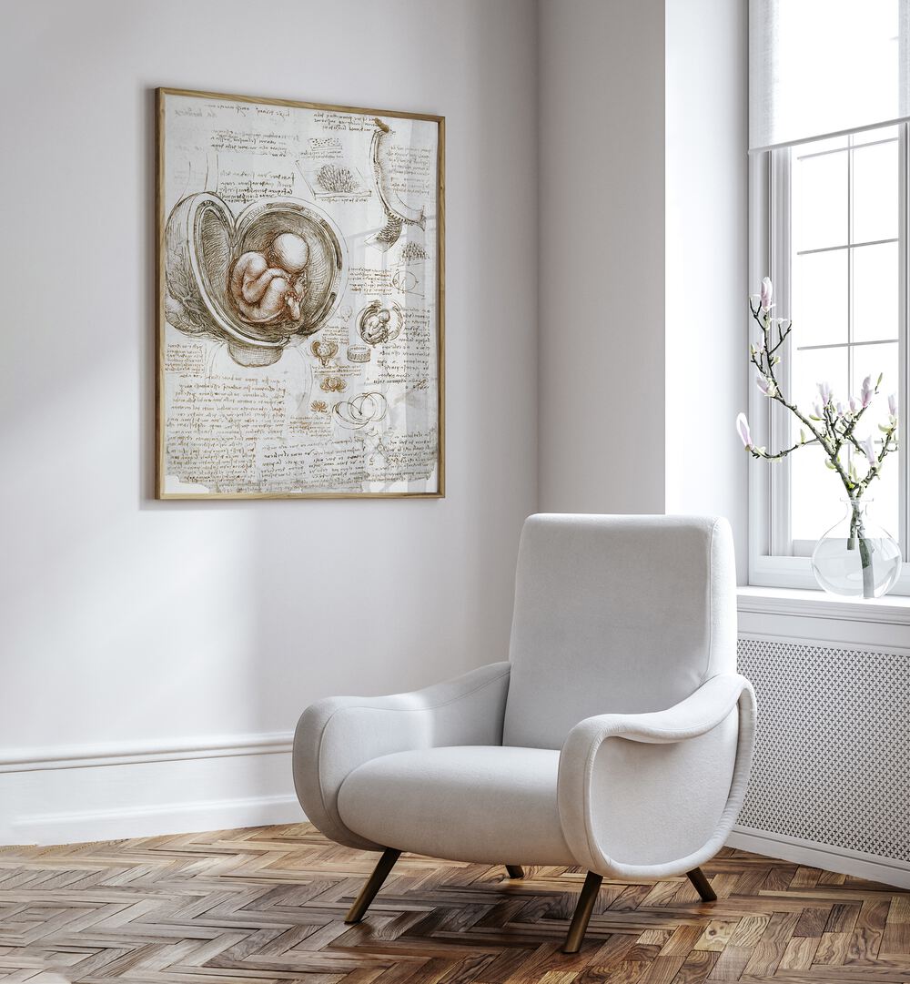 Step back in time with the exquisite Studies of the Foetus in the Womb, a remarkable collection of vintage paintings from circa 1510-1513. This unique piece captures the intersection of art and science, showcasing the early understanding of human anatomy and fetal development.