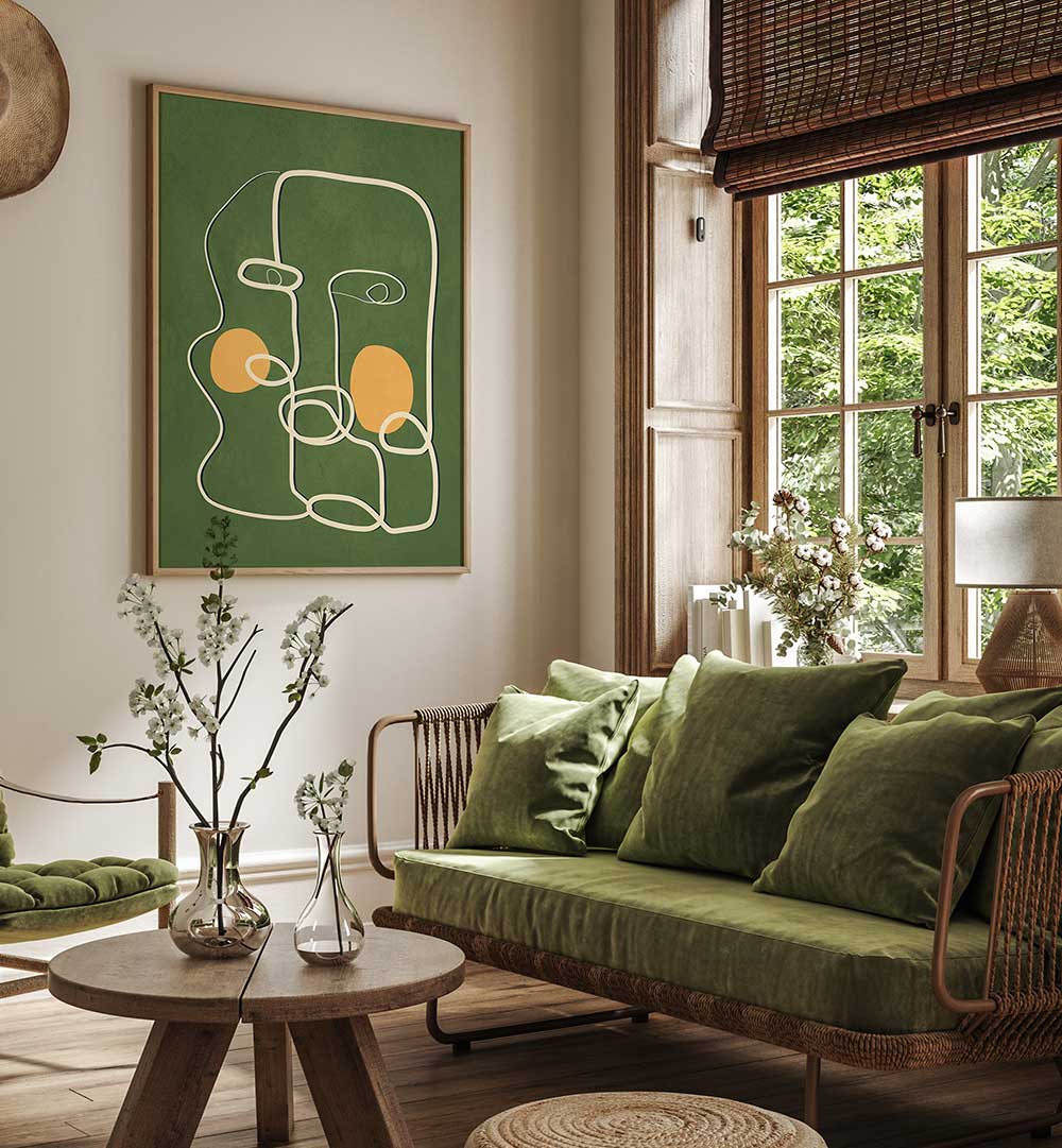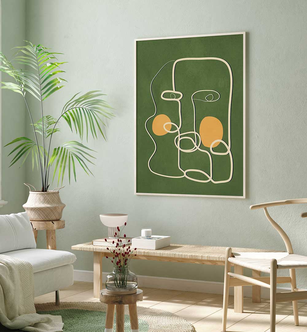 Create a refined gallery feel by pairing SPIRIT LINES FUSION with other line art pieces or textures like linen, stone, and wood for a balanced, contemporary look.