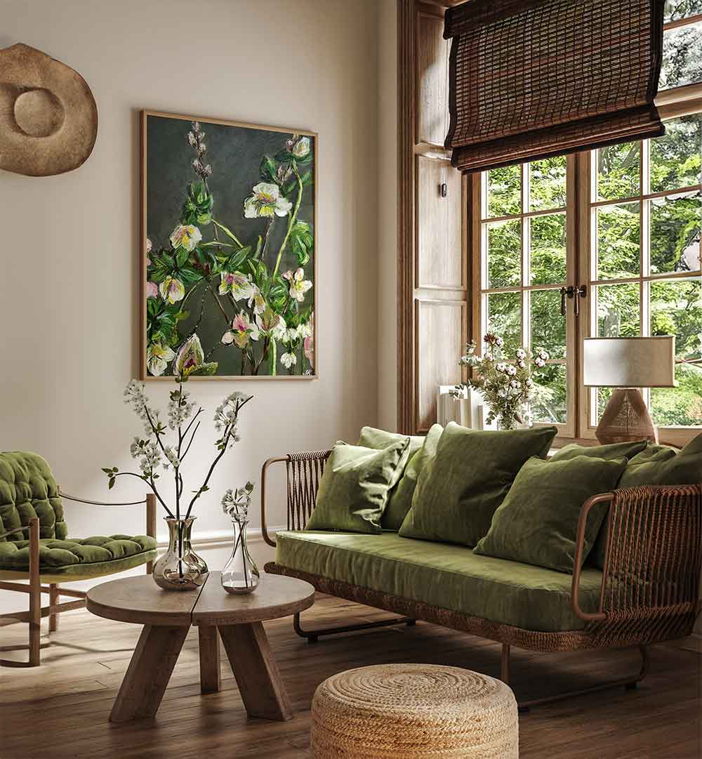 Designed to complement a wide range of decor styles—from contemporary minimalism to classic charm—this floral painting becomes a versatile centerpiece for living rooms, bedrooms, hallways, or home offices. The tranquil color palette harmonizes with neutrals and pastels, elevating your décor without overpowering other design elements.