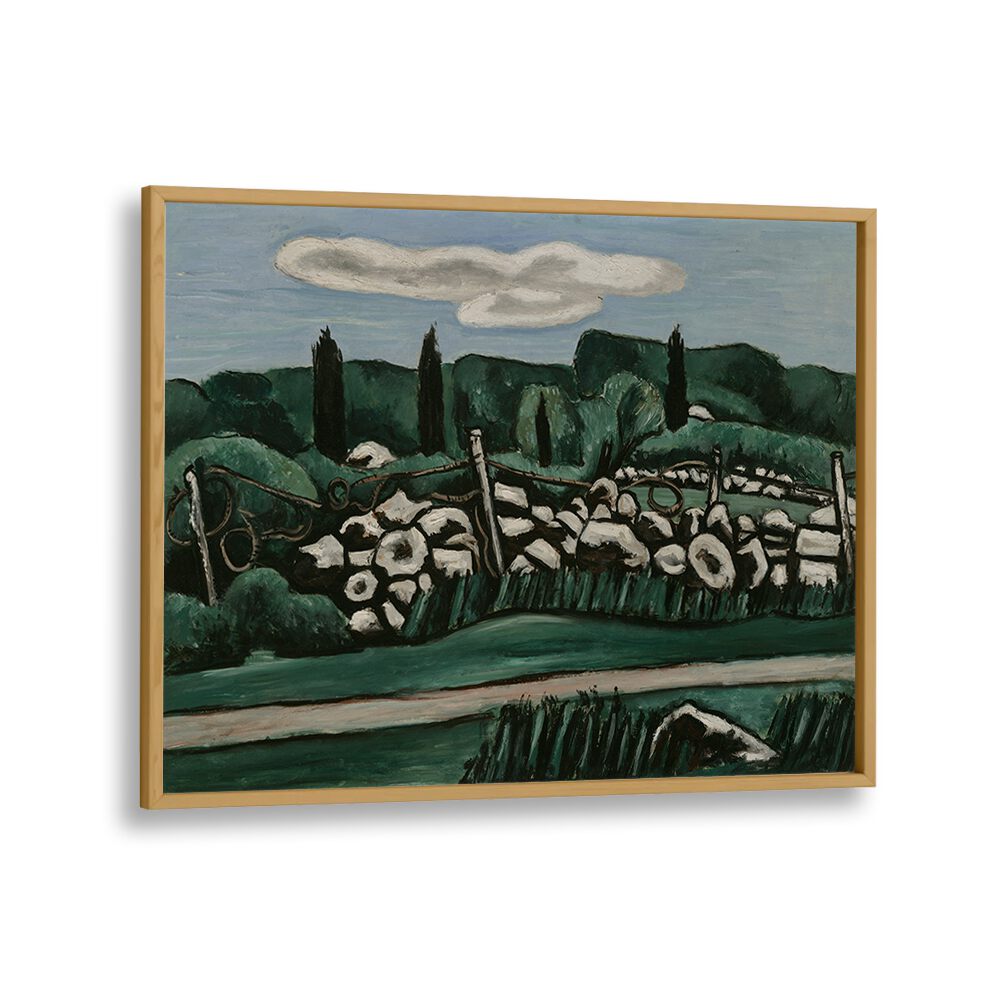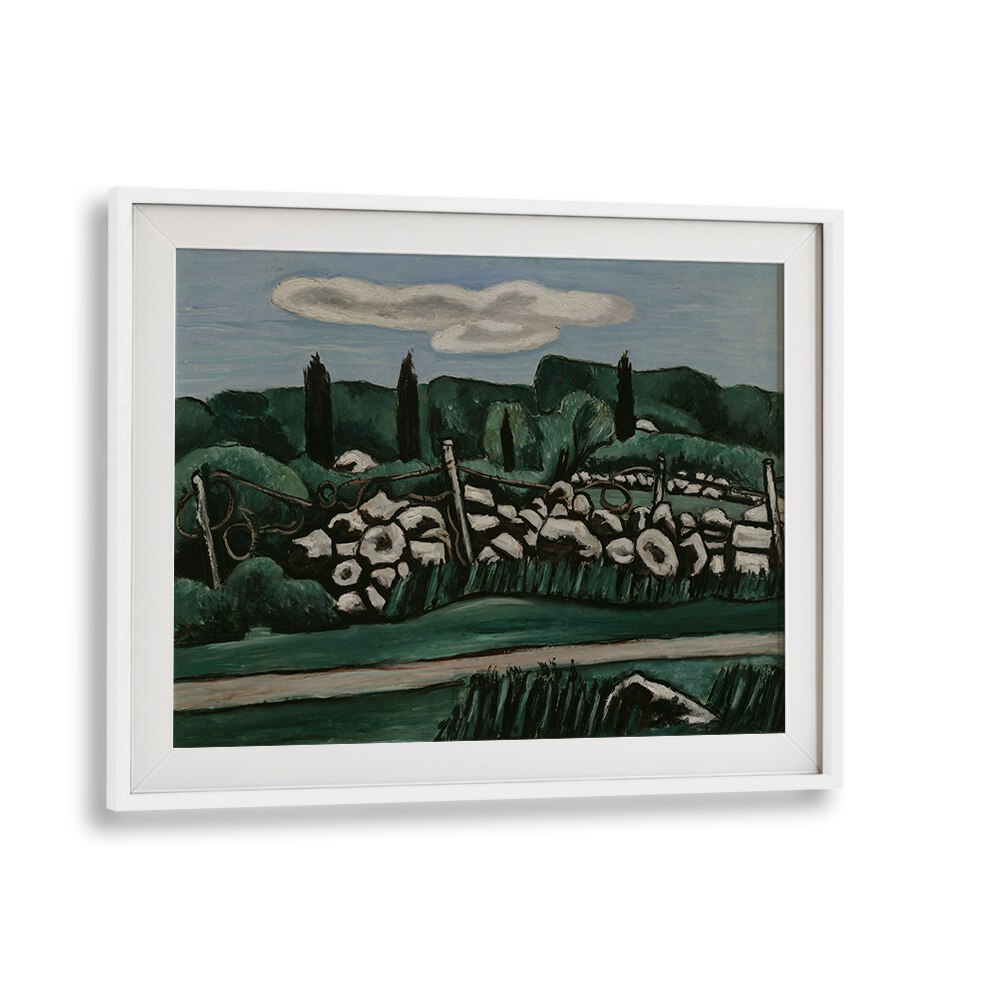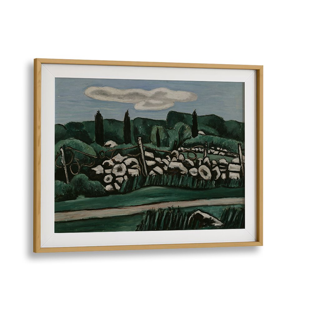Step into the captivating world of vintage art with "THE LAST STONE WALLS, DOGTOWN," a stunning painting that encapsulates the essence of a bygone era. Created between 1936 and 1937, this piece not only offers a glimpse into the historical landscape of Dogtown but also serves as a testament to the artistic prowess of its time.