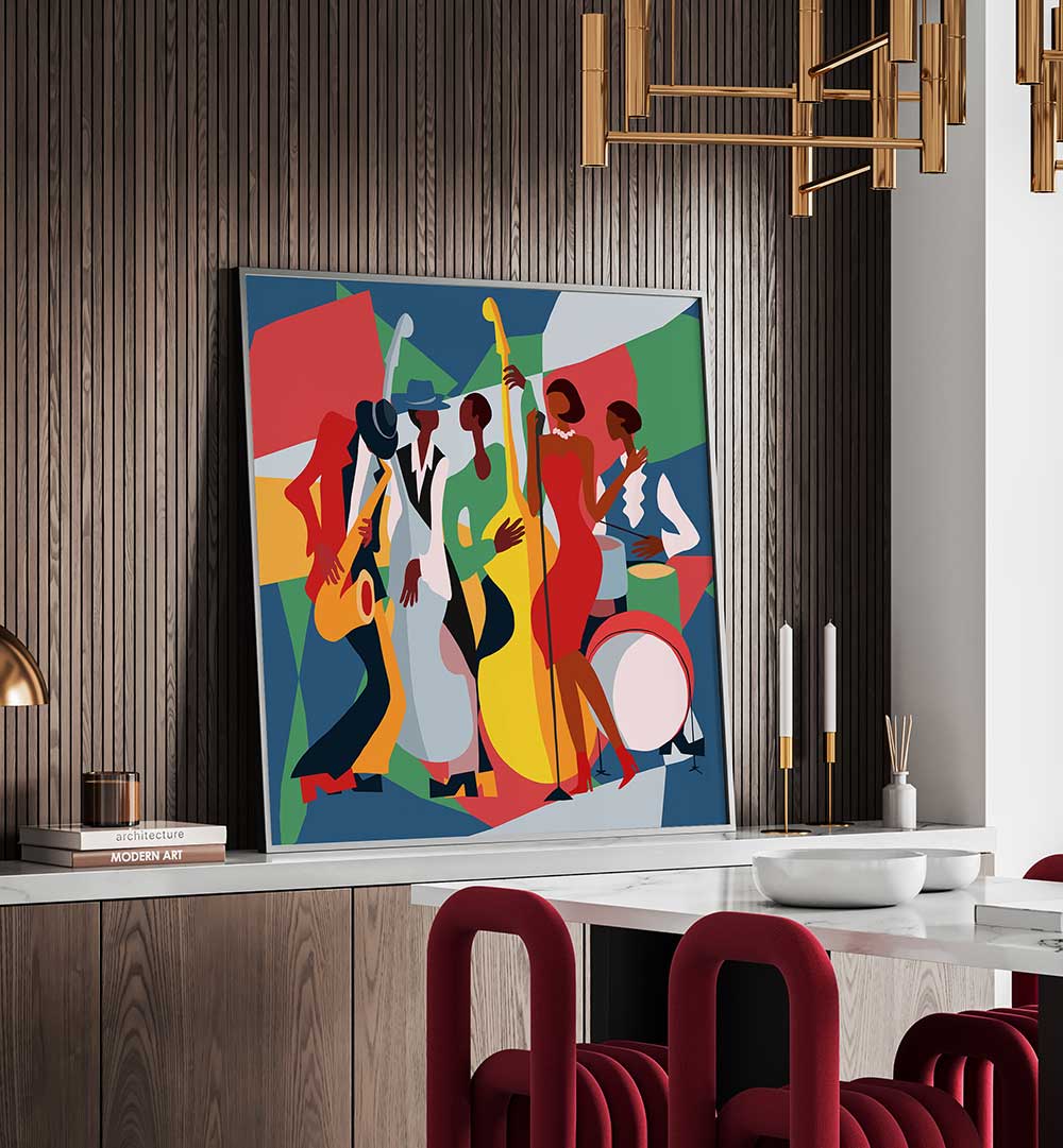Immerse your walls in the energy of live jazz with the JAZZ BAND, MUSIC POSTERS. This collection captures the improvisational spirit and timeless charm of jazz, making it the perfect centerpiece for music rooms, living spaces, and studios.