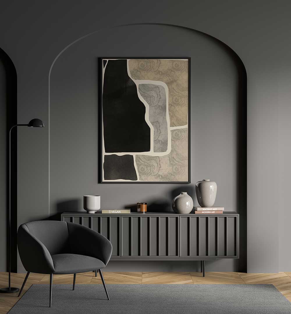 - Bold, versatile design: A dramatic canvas of blacks and subtle tonal shifts that remains chic in any lighting.