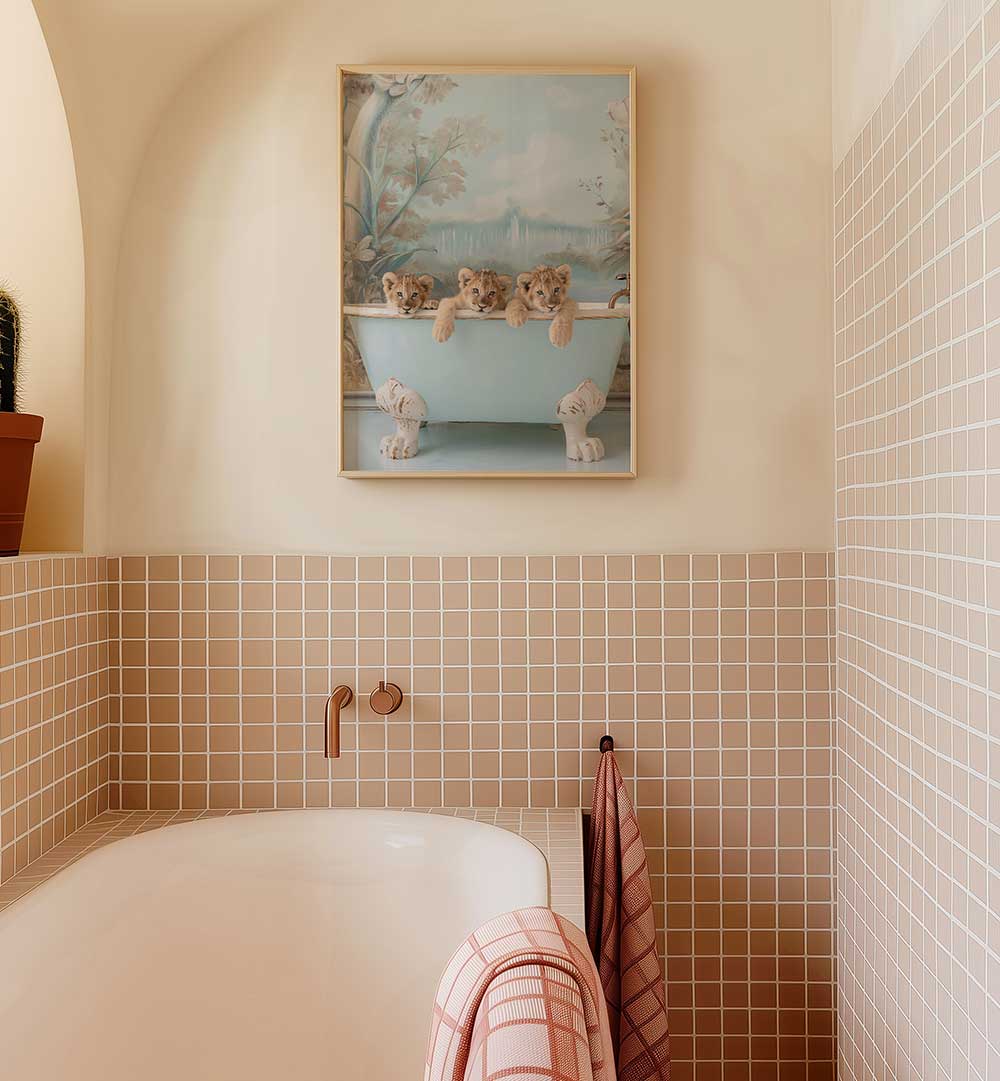 BLUE LAGOON LION CUBS , BATHROOM ART PRINTS