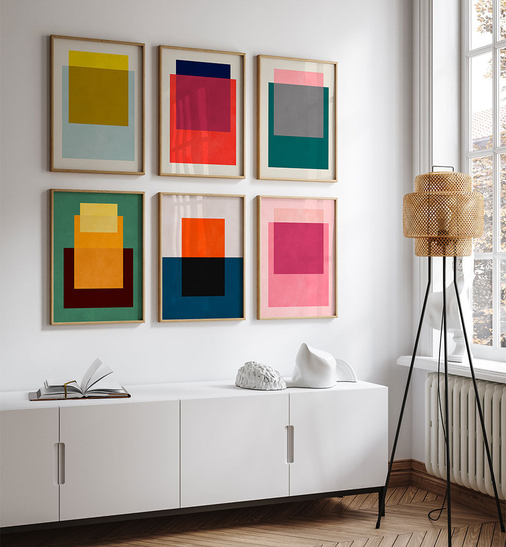Transform your space with the BOLD BLOCKS SET, SET OF 6 PAINTINGS. This eye-catching six-piece collection fuses bold color blocks, geometric forms, and modern minimalism—perfect for living rooms, hallways, offices or any space craving high-impact design.