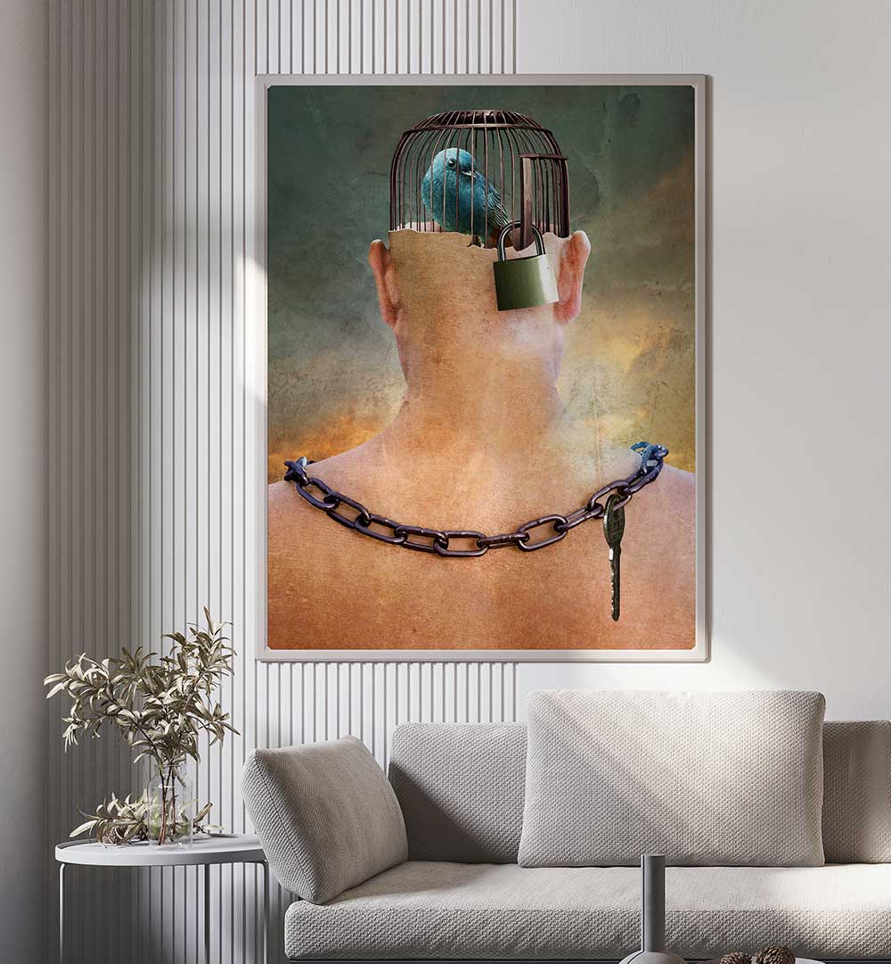 Embrace the surreal and unlock a new level of creativity in your space with "Can You Open the Imprisoned Thought". Order yours today and let your walls tell a story!