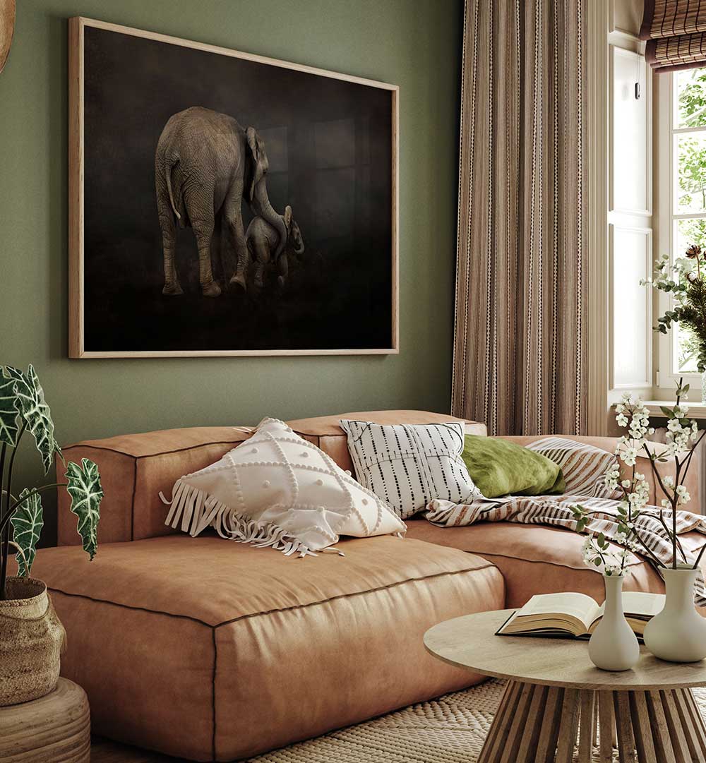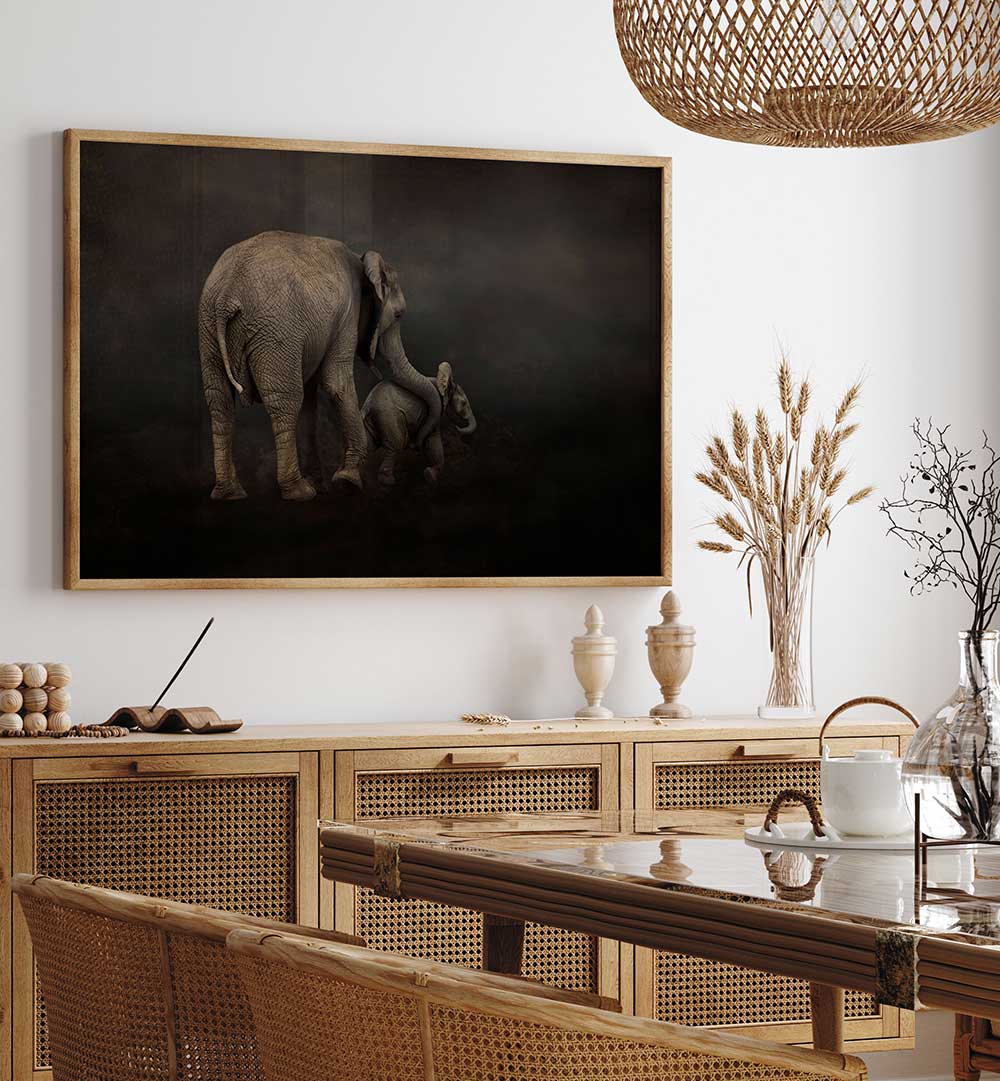 Immerse yourself in the breathtaking beauty of wildlife with this stunning fine art photograph. "I HOLD YOU" captures an unforgettable moment between a majestic elephant mother and her precious calf, showcasing the raw power and gentle nurturing that defines maternal love in the animal kingdom.