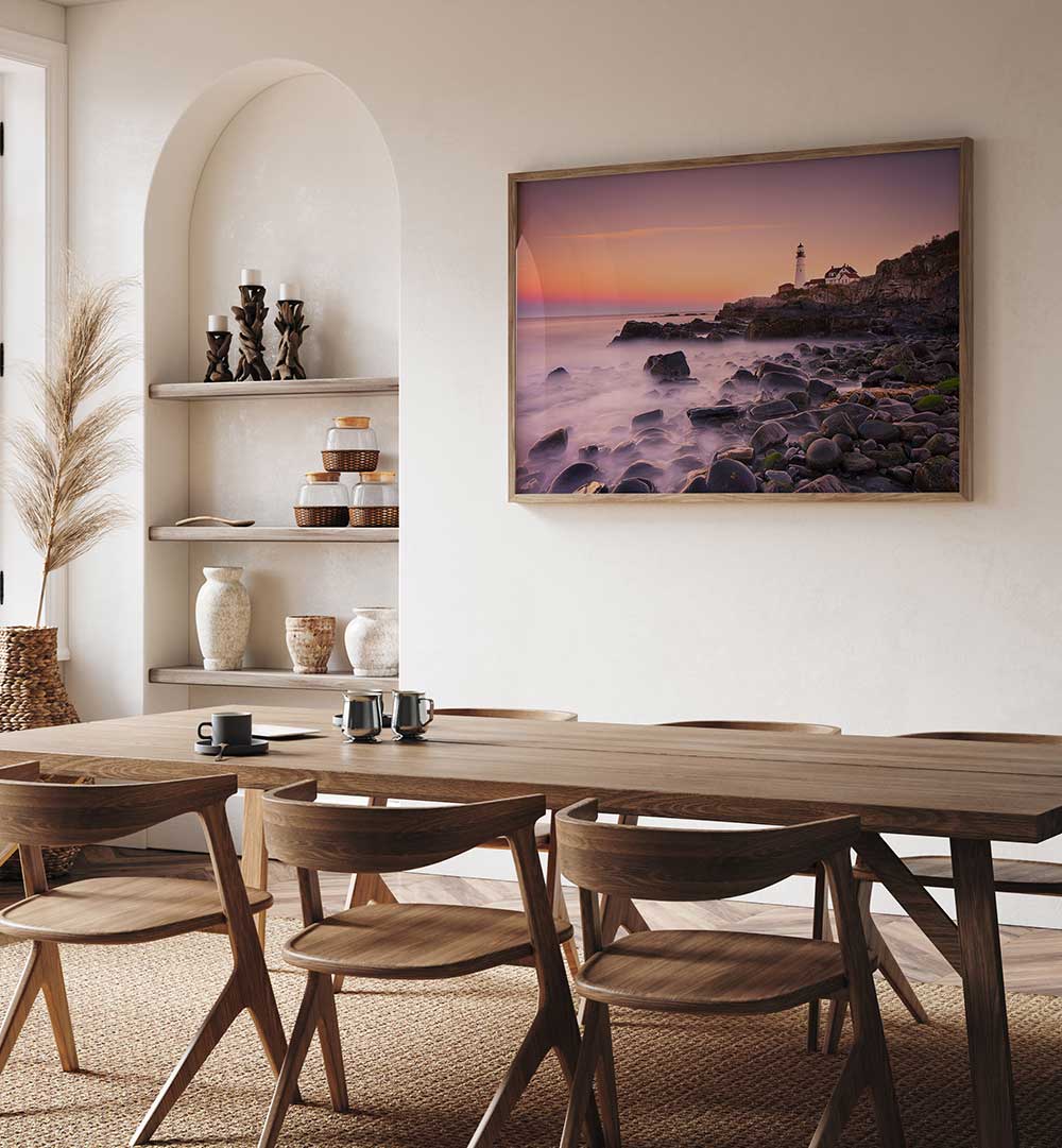 Transform your space with the stunning imagery of the Portland Headlight. This piece not only enhances your home decor but also serves as a reminder of the tranquil beauty of the sea. Let the waves and lighthouse inspire your daily life!