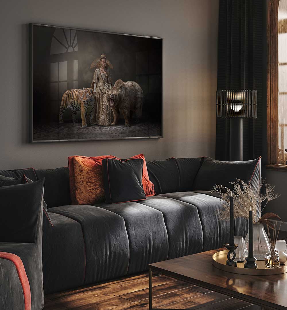 Transform your space into a surreal wonderland. Bring home the Princess Beasts Altered Art Prints and let your walls tell a story that transcends reality.