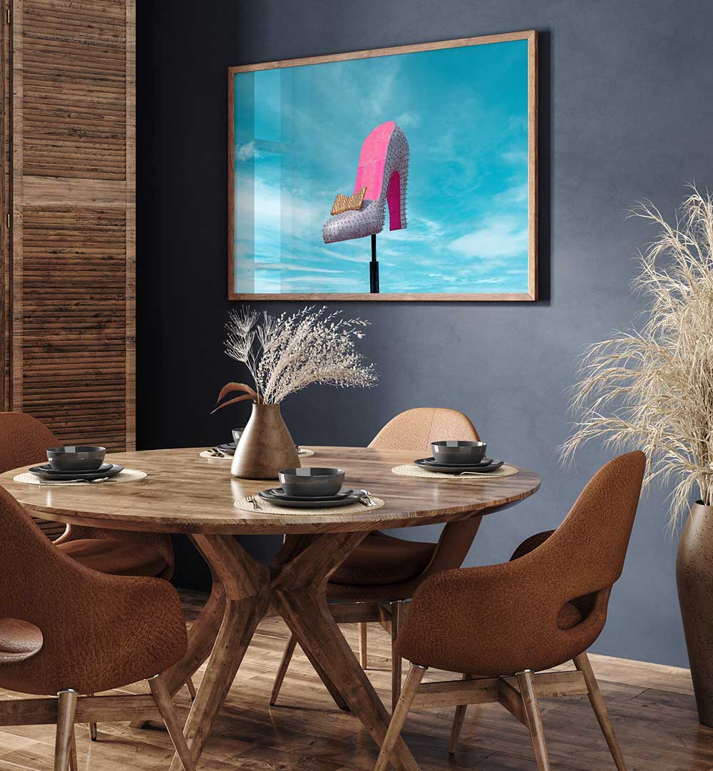 Step into a world where reality meets imagination with our Silver Slipper Altered Art Prints. This stunning piece captures the essence of surrealism, transforming the ordinary into the extraordinary.