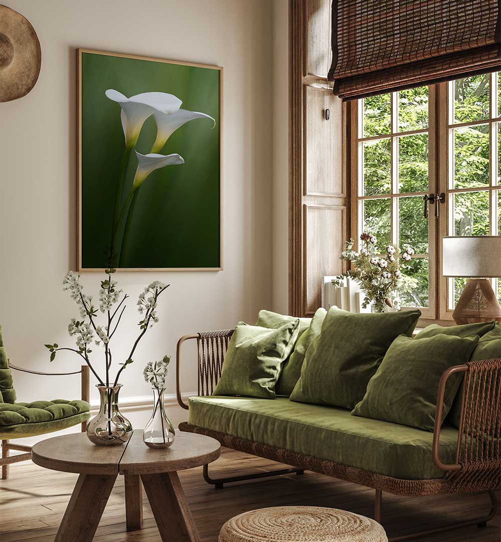 Immerse yourself in the captivating beauty of our fine art photography, where simplicity and elegance converge to celebrate the natural world. This stunning artwork features a delicate white flower, emerging gracefully amidst a backdrop of lush greenery, inviting you to appreciate the intricate details of nature.