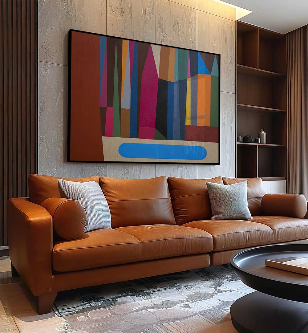 - Geometric interpretation of a lake — clean lines, layered shapes, and reflections that evoke water’s movement without overpowering your walls.