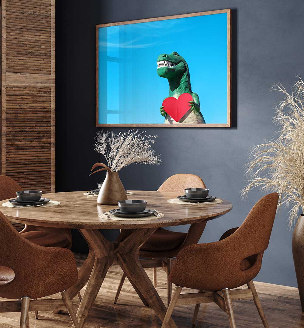 Discover the Unique Charm of Our Tyrannosaurus Rex with a Red Paper Heart II Photography Art Print