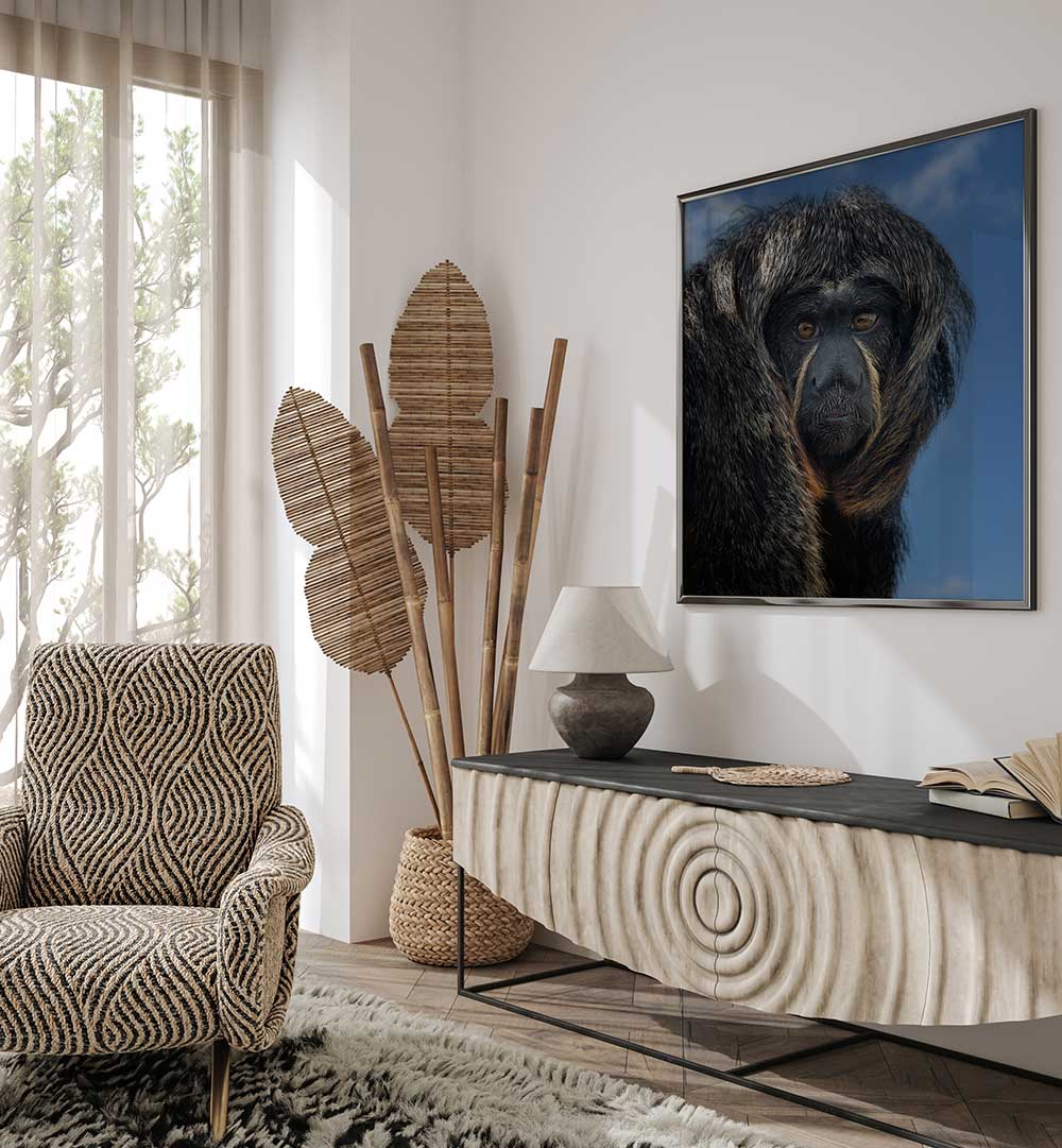 Experience the allure of wildlife through fine art photography and let the White-Faced Saki inspire your surroundings.
