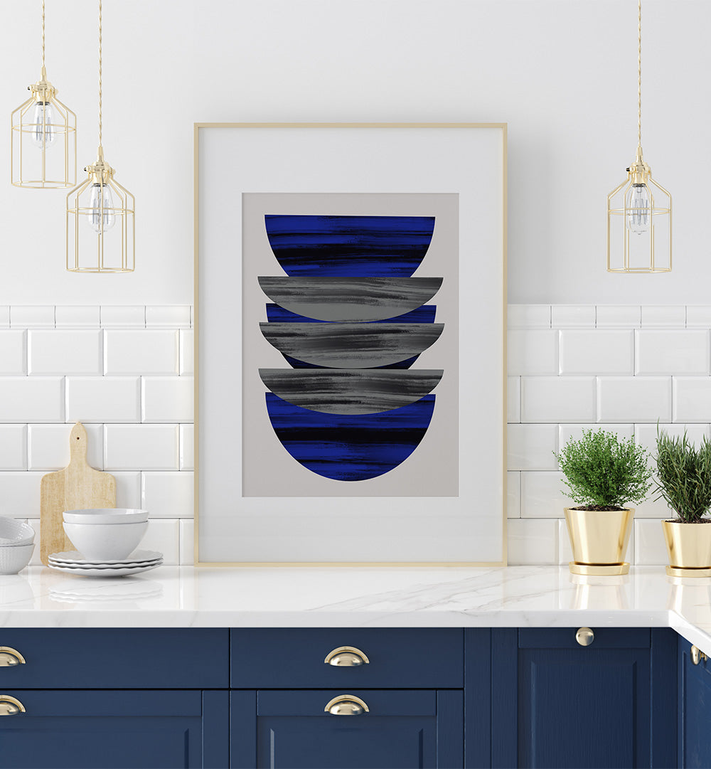 SCANDINAVIAN IN BLUE AND BLACK , GEOMETRIC ART PRINTS
