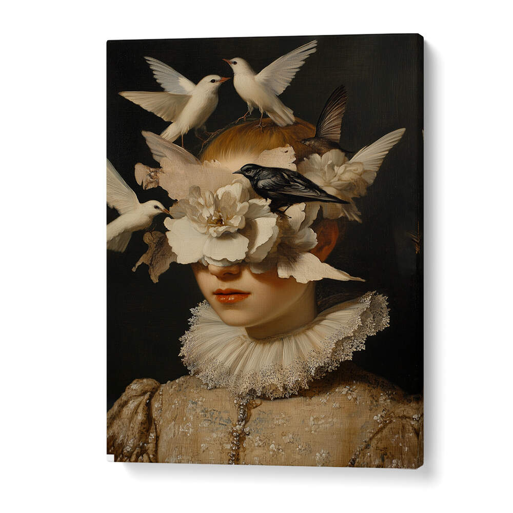 WOMAN WITH WHITE BIRDS