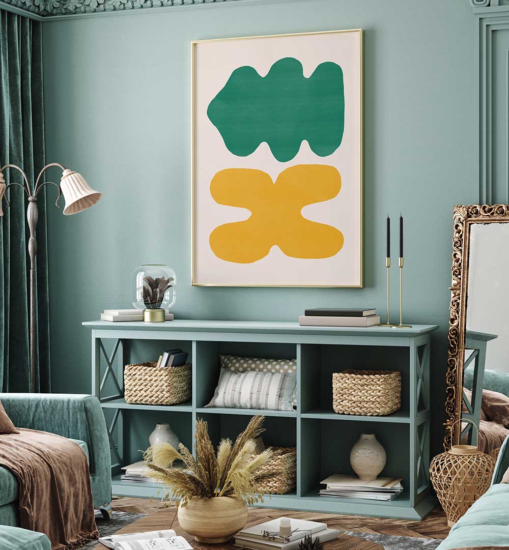 ORGANIC SHAPES IN GREEN AND YELLOW , GEOMETRIC ART PRINTS