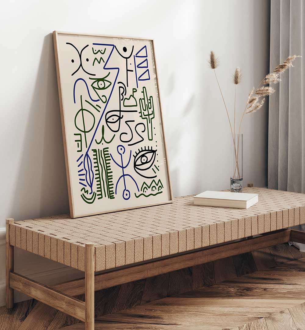 LINE ART IN COBALT BLUE , LINE ART PAINTINGS