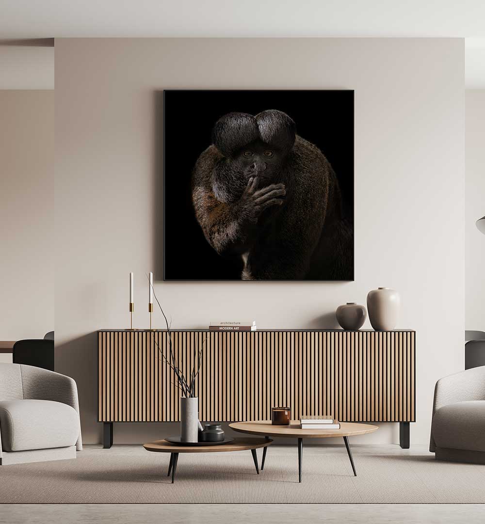 RED-BACKED BEARDED SAKI - CHIROPOTES , PHOTOGRAPHY PRINTS