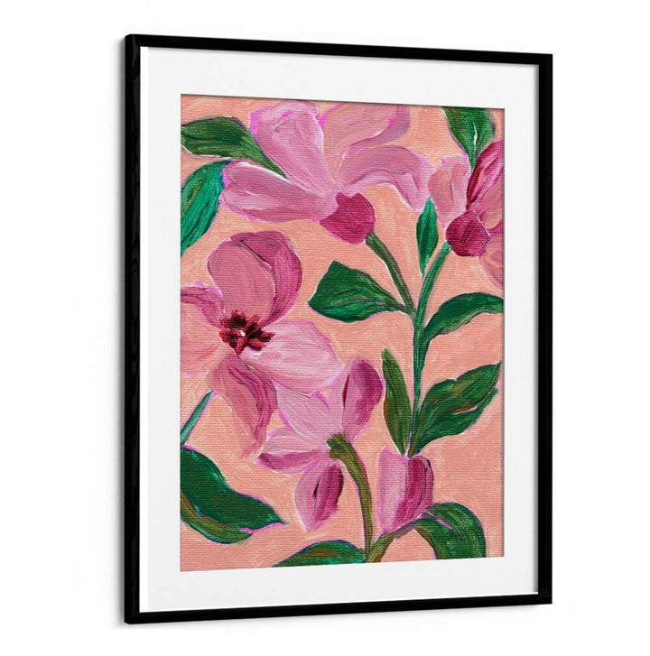 Bring a touch of whimsy and grace to your space with our PINK FLOWERS LEAVES, FLORAL FLOWER PAINTINGS. This piece captures soft pink blossoms interwoven with fresh green leaves, creating a balanced composition that feels both romantic and modern.
