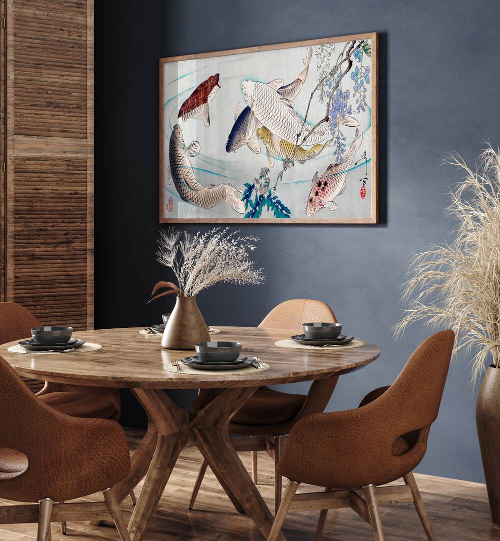 Looking for a thoughtful gift? This art print is an ideal choice for art lovers, collectors, or anyone who appreciates the beauty of nature and fine craftsmanship. Transform your space today with the enchanting SIX CARP SWIMMING BENEATH WISTERIA—a timeless piece that embodies the serene spirit of Japan.