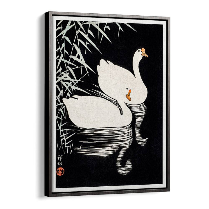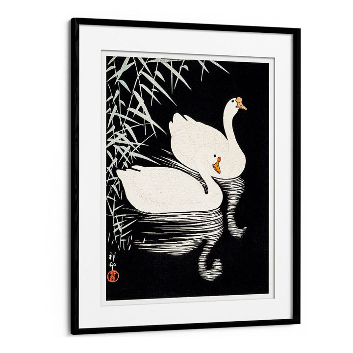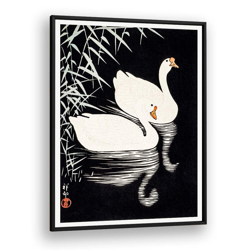 WHITE CHINESE GEESE SWIMMING , JAPANESE PAINTINGS , JAPANESE ART PRINTS