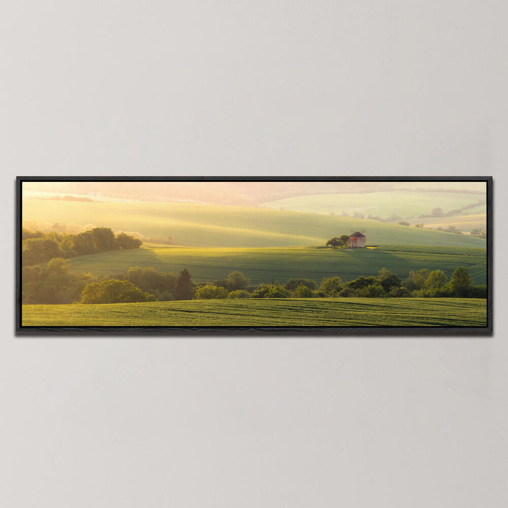 Immerse your space in the quiet magic of Moravian landscapes with Moravian Idyl, Panoramic Art. This expansive panorama invites the eye to wander across rolling hills, distant villages, and golden light, creating a serene atmosphere that transforms any room into a moment of peaceful retreat.