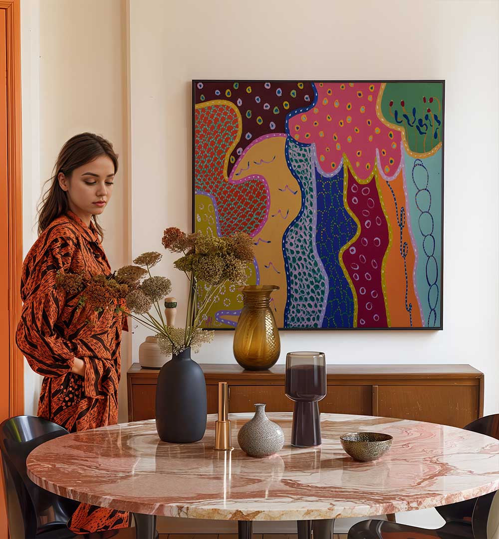 Each print is meticulously crafted, showcasing a vibrant interplay of colors and shapes that add depth and personality to any room. Whether you're looking to enhance your bohemian style or seeking a bold statement piece, our collection offers: