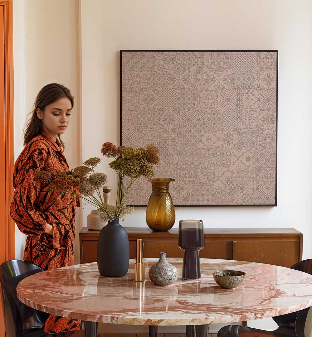 VINTAGE TILE PATTERN CLASH SOFT PINK , PATTERN ART PRINTS
