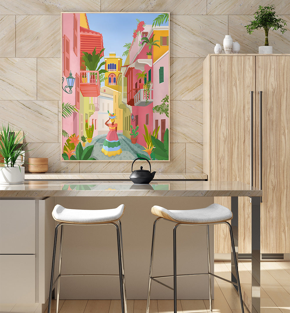- Authentic sense of place: the artwork captures Cartagena’s iconic energy—the colorful facades, cobblestone streets, and the feeling of the Caribbean right on your wall.