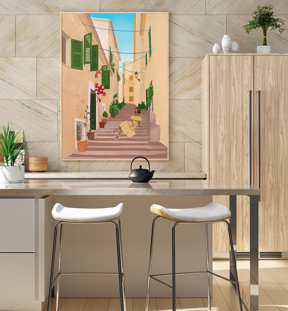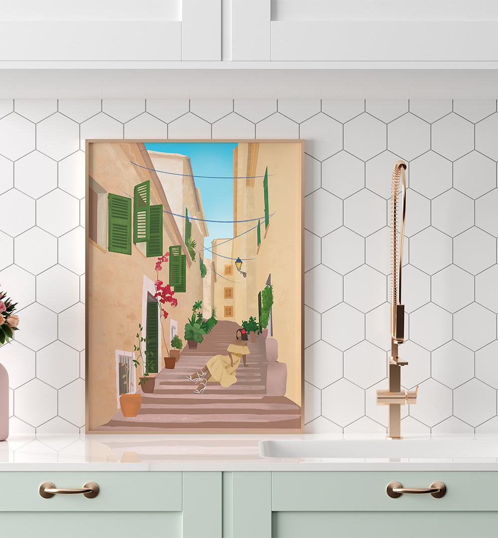 - Color coordination: Let the poster guide your color palette—accent with cool blues and warm sand tones for a balanced, Mediterranean vibe.
