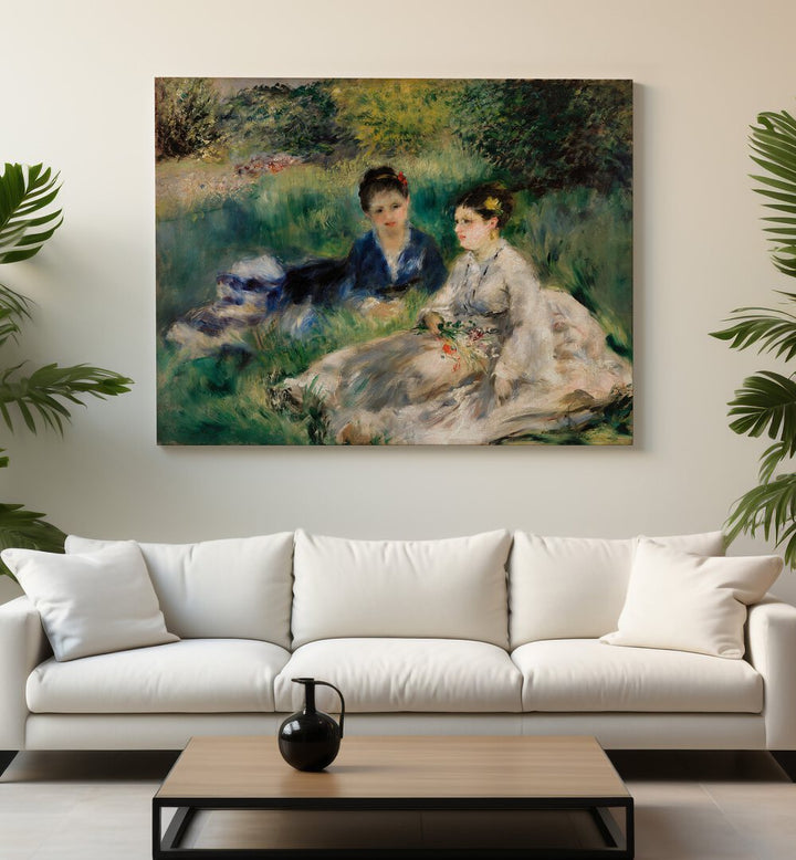 Immerse yourself in the world of classic art with this stunning print of Pierre Auguste Renoir's "On the Grass: Jeunes Femmes Assises Dans L'Herbe (1873)". Now available on premium museum-grade canvas and fine art media, this piece is a testament to Renoir's artistic genius.