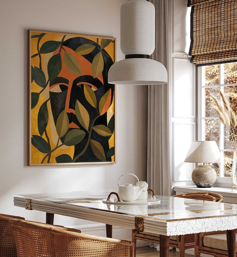 Enhance your space with these compelling man in the leaves portraits and figurative illustrations—art that invites conversation, complements varied aesthetics, and brings a refined, contemporary touch to your decor.