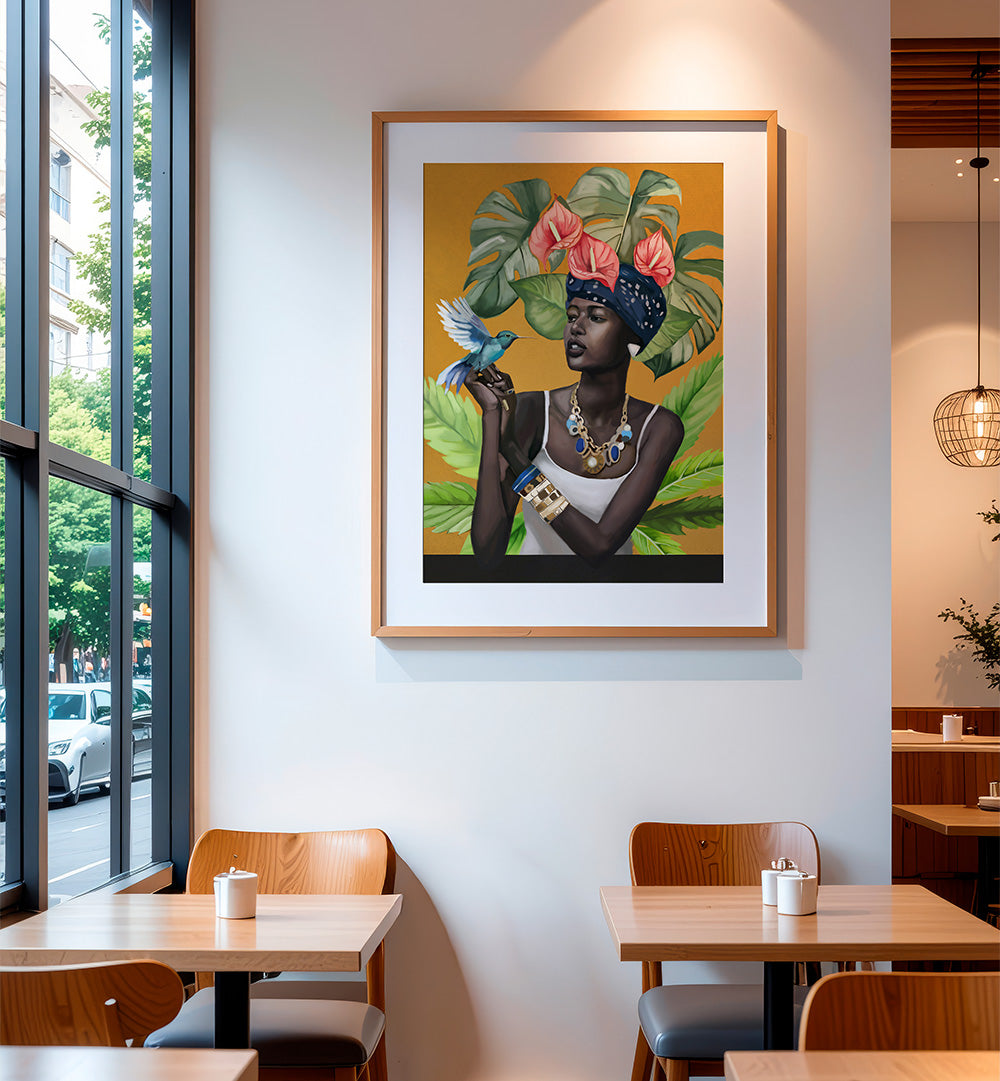 Ideal for creating a relaxed yet sophisticated atmosphere, this print transforms any room into a personal oasis. Its tropical theme combined with surreal elements makes it perfect for living spaces, bedrooms, or creative studios seeking a touch of escapism and beauty.