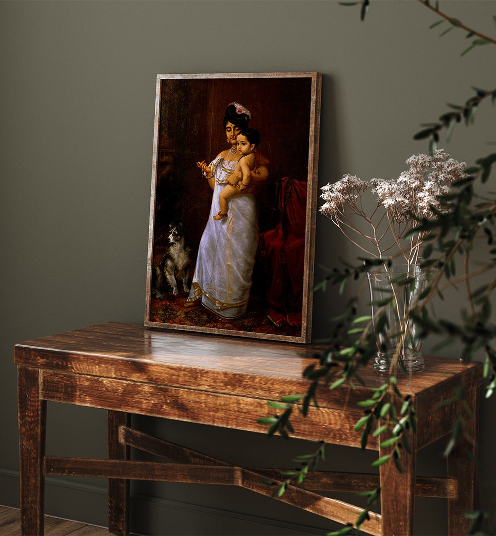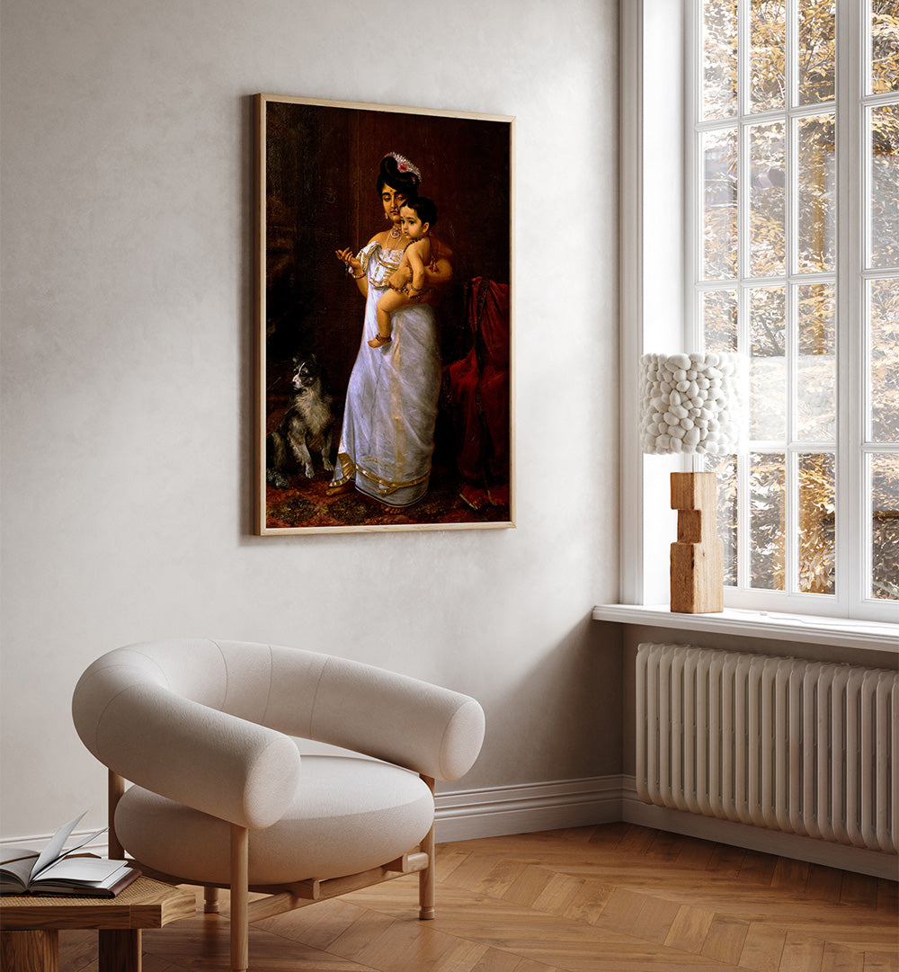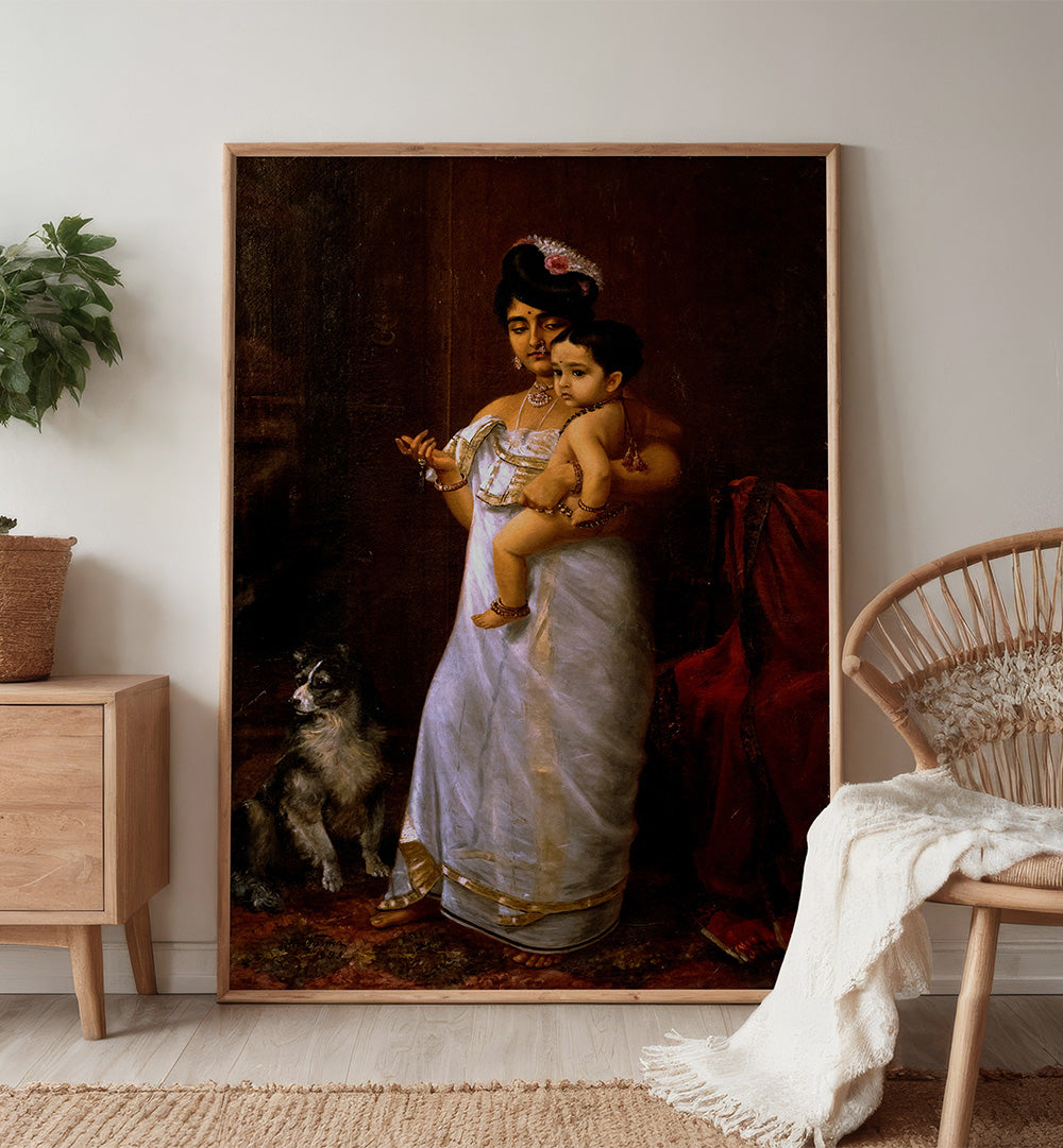 Experience the warmth and charm of THERE COMES PAPA (1893) by Raja Ravi Varma, a touching portrayal of family life in 19th-century India. This exquisite art print captures a tender moment with masterful detail and emotional depth.