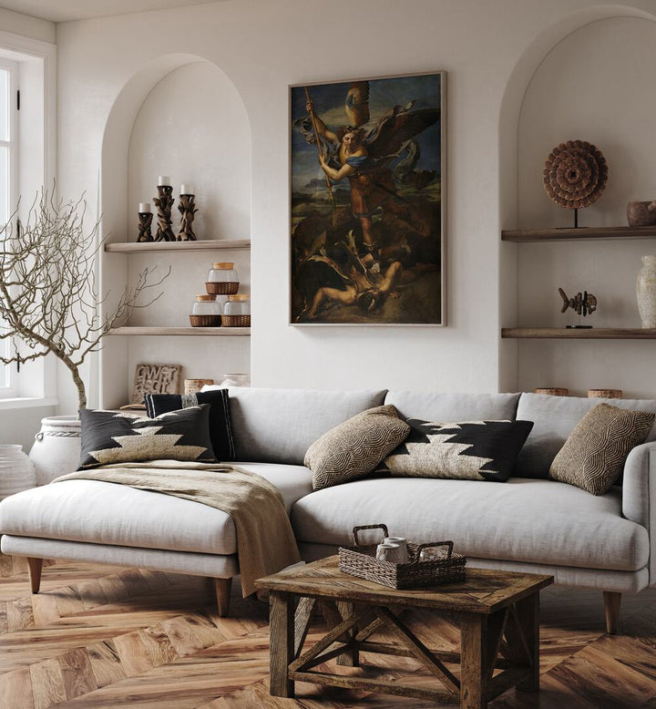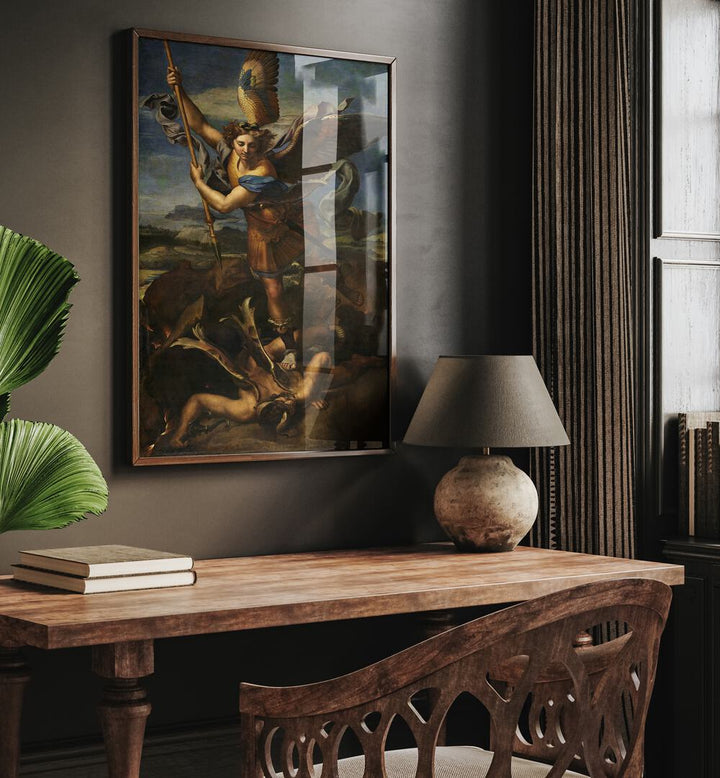 Step into a world of artistic brilliance with "War in Heaven (1518)" by the legendary Raphael Raffaello. This exquisite vintage painting is now available as a premium art print, meticulously crafted to elevate your home decor and inspire your imagination.