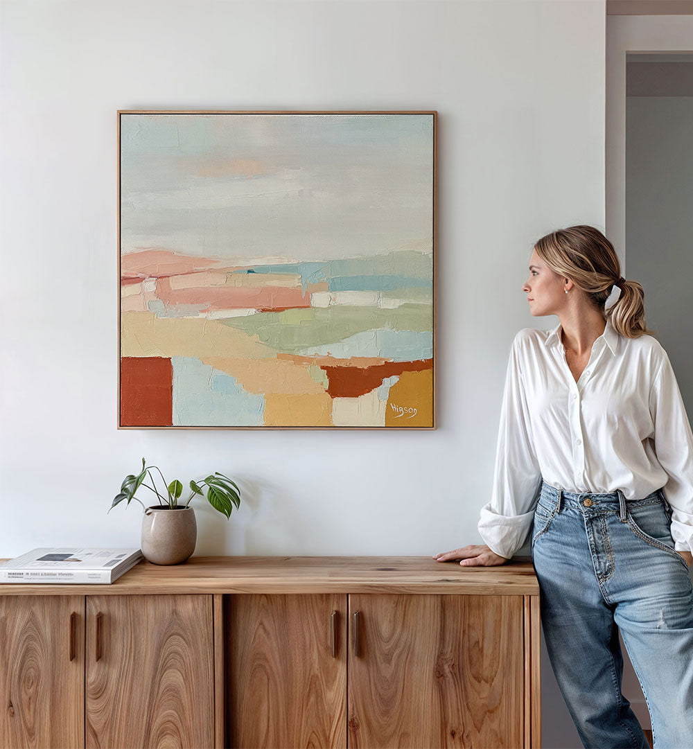 Designed for modern interiors, this abstract painting makes a bold statement in living rooms, hallways, offices, or galleries. Its layered color fields and expressive brushwork invite slow, thoughtful viewing, while its balanced composition complements minimalist decor as well as more eclectic interiors.