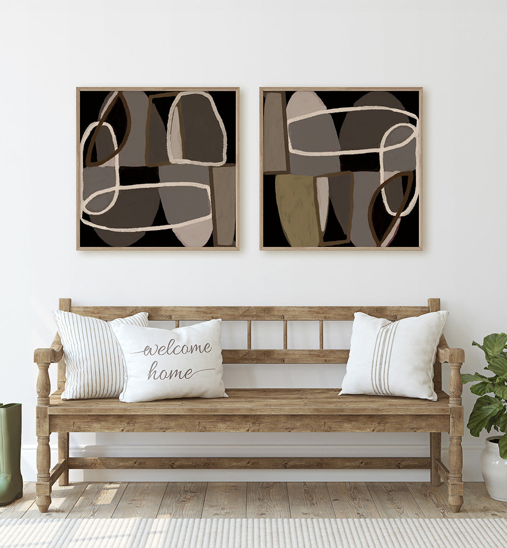 Enhance your space with the elegant rhythm and modern depth of the Interwoven Shapes Set – Set of 2 Paintings. This balanced duo features abstract interlacing forms, smooth contours, and sophisticated layering — creating a visual interplay that feels both dynamic and harmonious. The artful combination of shapes and muted tones evokes subtle movement and contemporary balance, making this set a standout choice for interiors that value refined design and thoughtful expression.