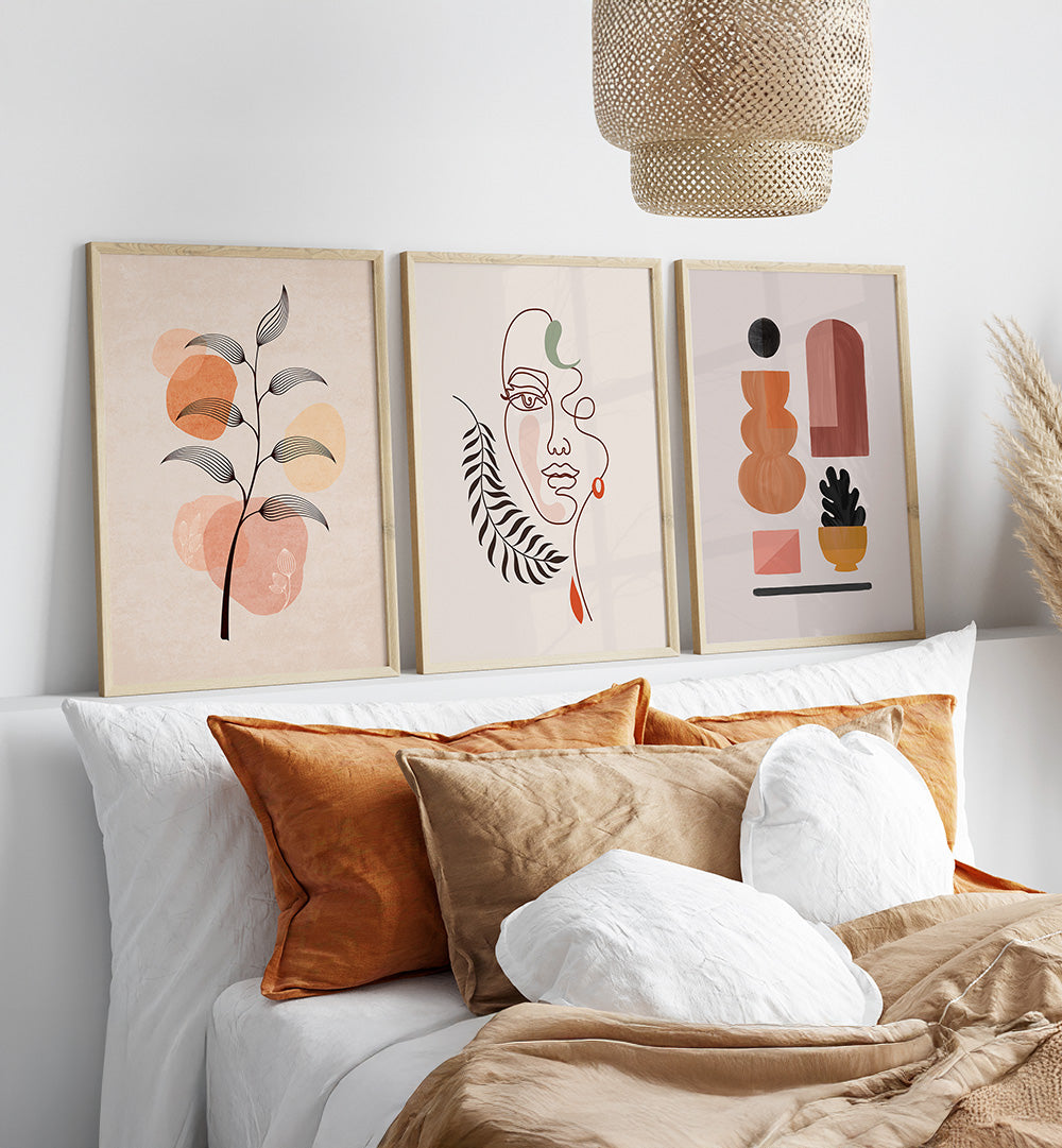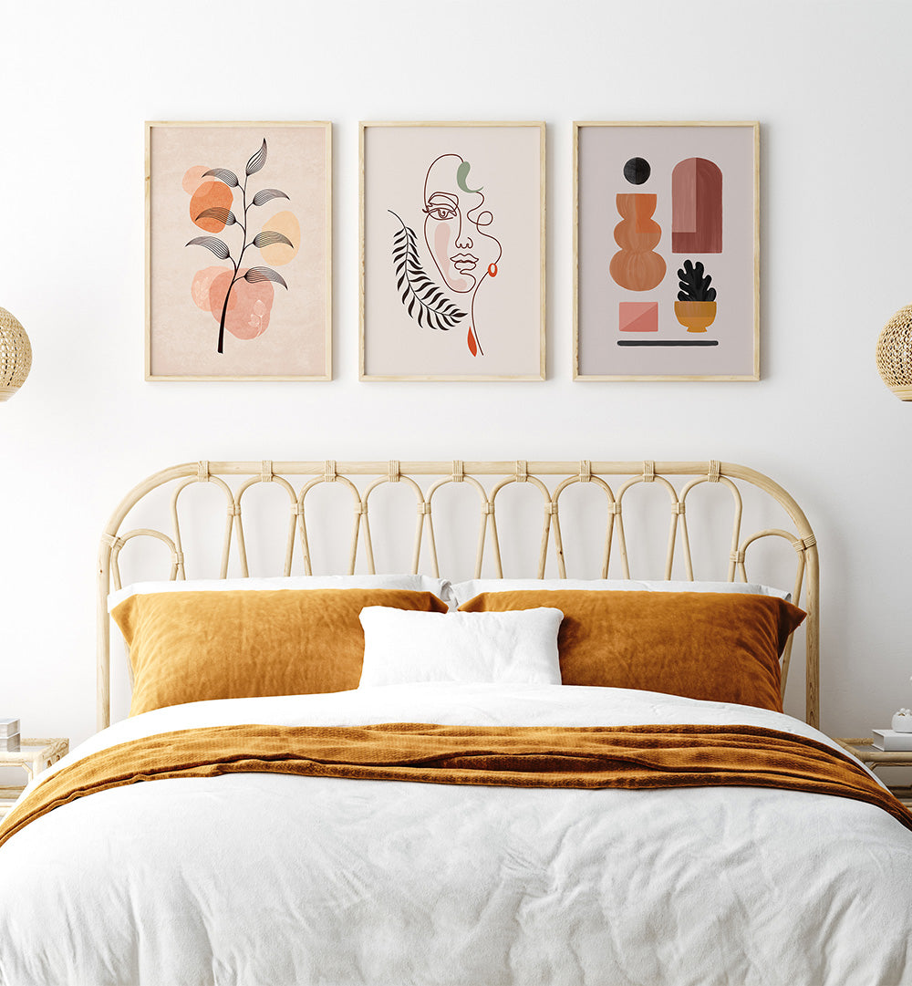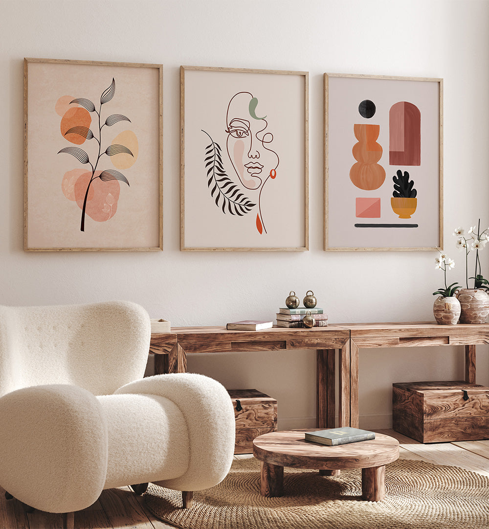 The Boheme Calm Set brings peaceful bohemian elegance to your walls with three beautifully curated paintings that celebrate the free-spirited beauty of boho style, the tranquility of calm aesthetics, and the artistic soul of bohemian living.