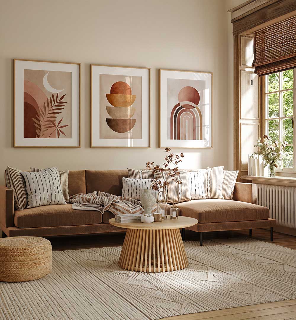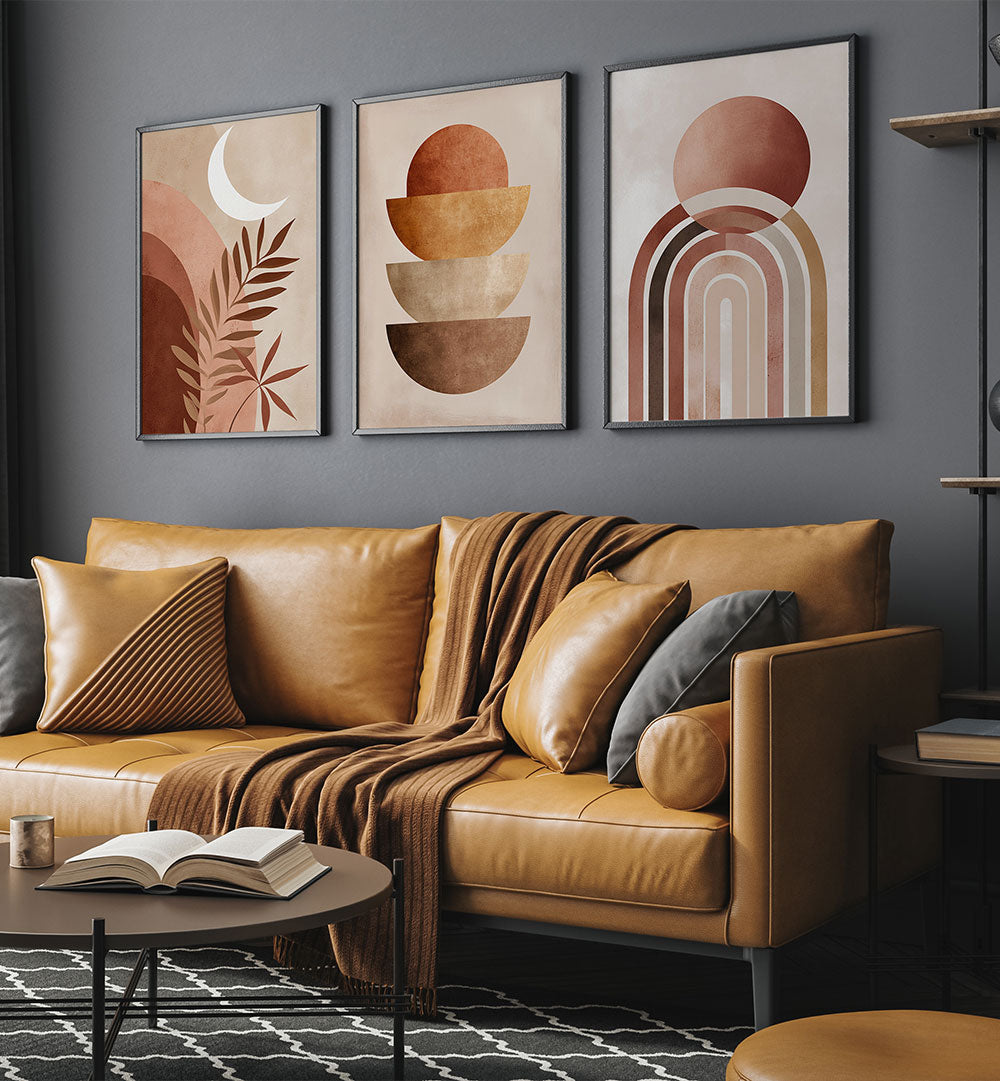 Infuse your home with bohemian warmth and celestial charm with the Boho Theme Set – Set of 3 Paintings. This thoughtfully curated trio brings together soft geometric forms, muted earth tones, and mystical shapes — echoing the elegance of boho decor with a subtle nod to cosmic motifs.