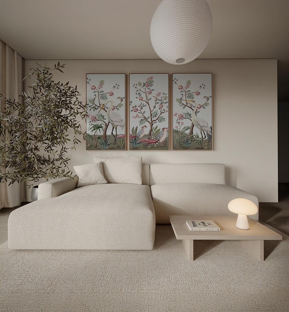 Elevate your space with the Cranes – a serene set of 3 minimalist paintings capturing the delicate elegance of cranes in motion. Blending simplicity with symbolism, this wall art set adds a sense of calm, beauty, and natural rhythm to your home.
