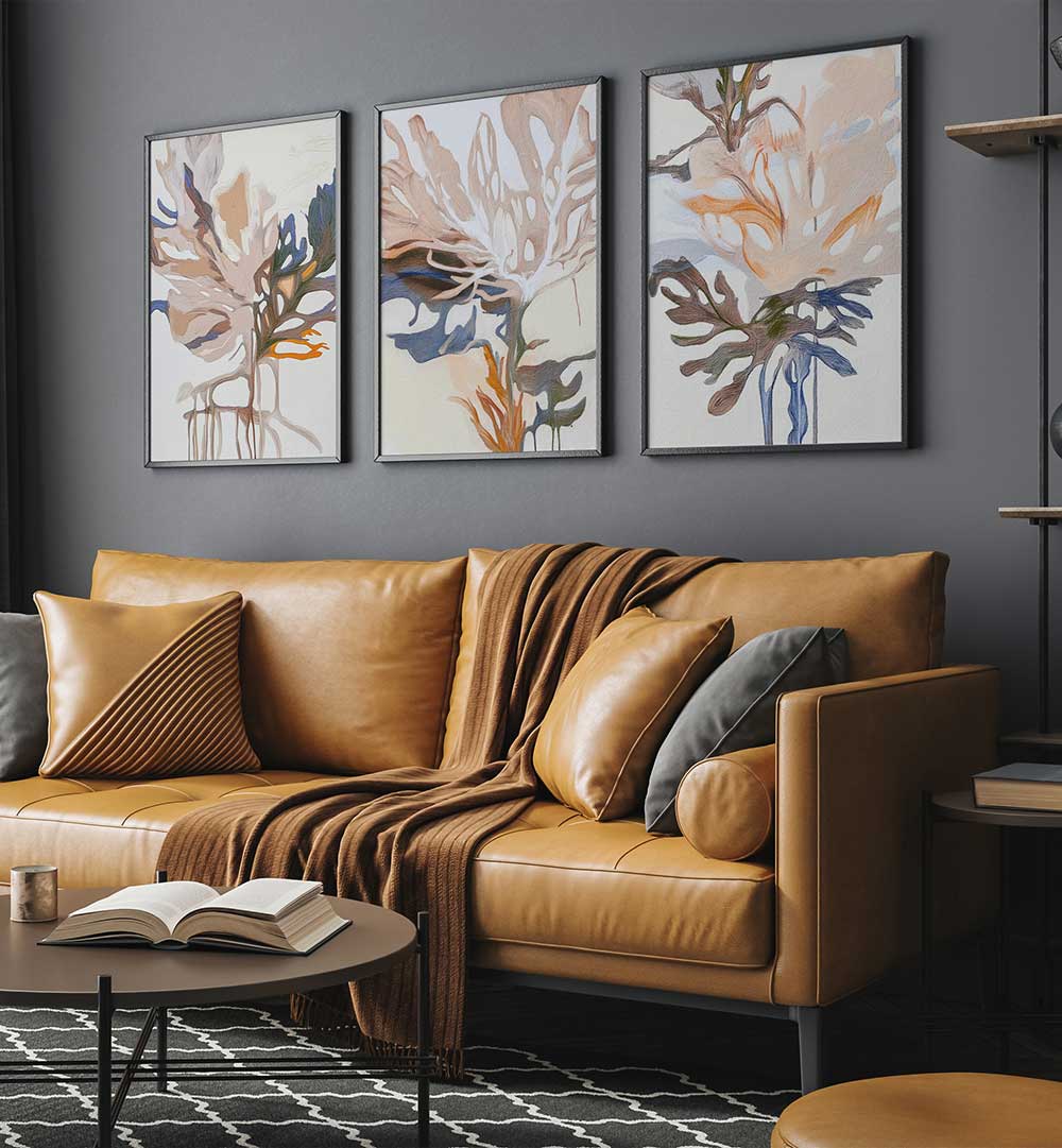 Whether hung together as a unified triptych above a sofa or bed, or placed separately across different rooms to carry a cohesive floral theme throughout your space, this set adapts beautifully. The muted, natural palette and refined floral abstraction make the artworks a timeless addition to living rooms, bedrooms, study corners, or any space in need of calm and charm. Printed on premium archival-grade paper or high-quality canvas with fade-resistant pigments, the prints preserve delicate details, soft gradients, and lasting vibrancy over time.