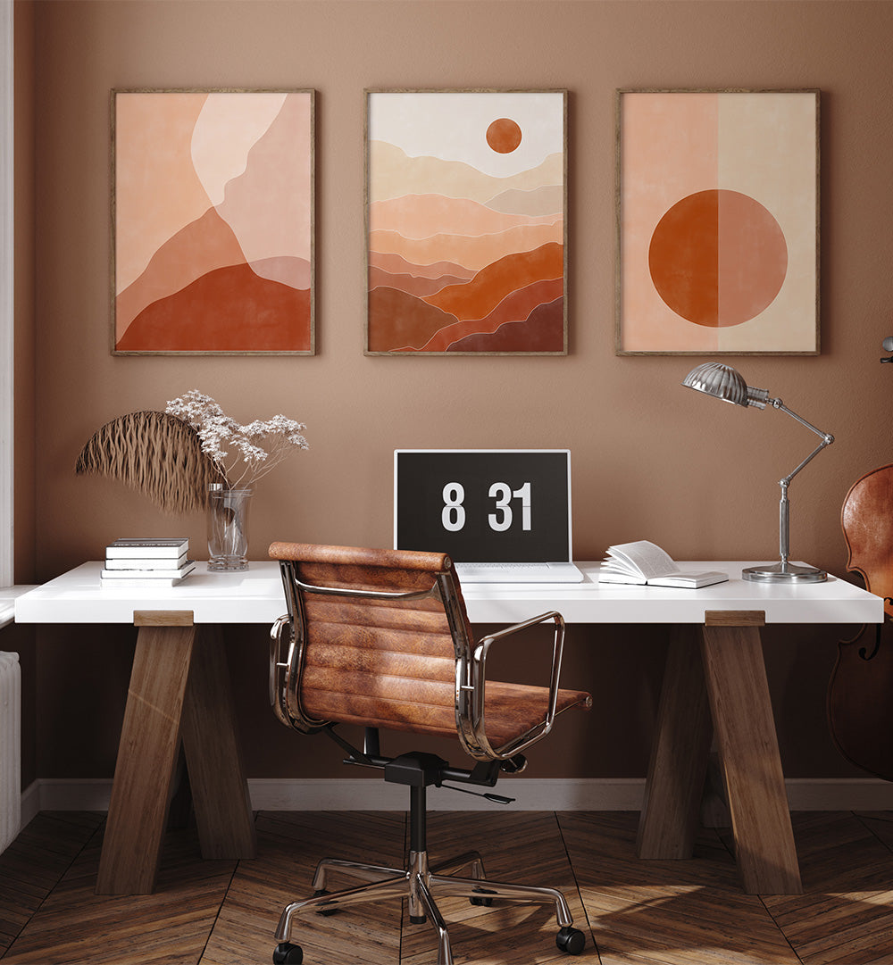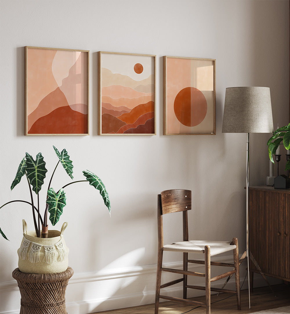Transform your living space with the NATURE ESCAPES, SET OF 3 PAINTINGS. This exquisite collection of wall art brings the serene beauty of nature indoors, featuring stunning earth tones and organic abstract designs that seamlessly blend modern and bohemian aesthetics.