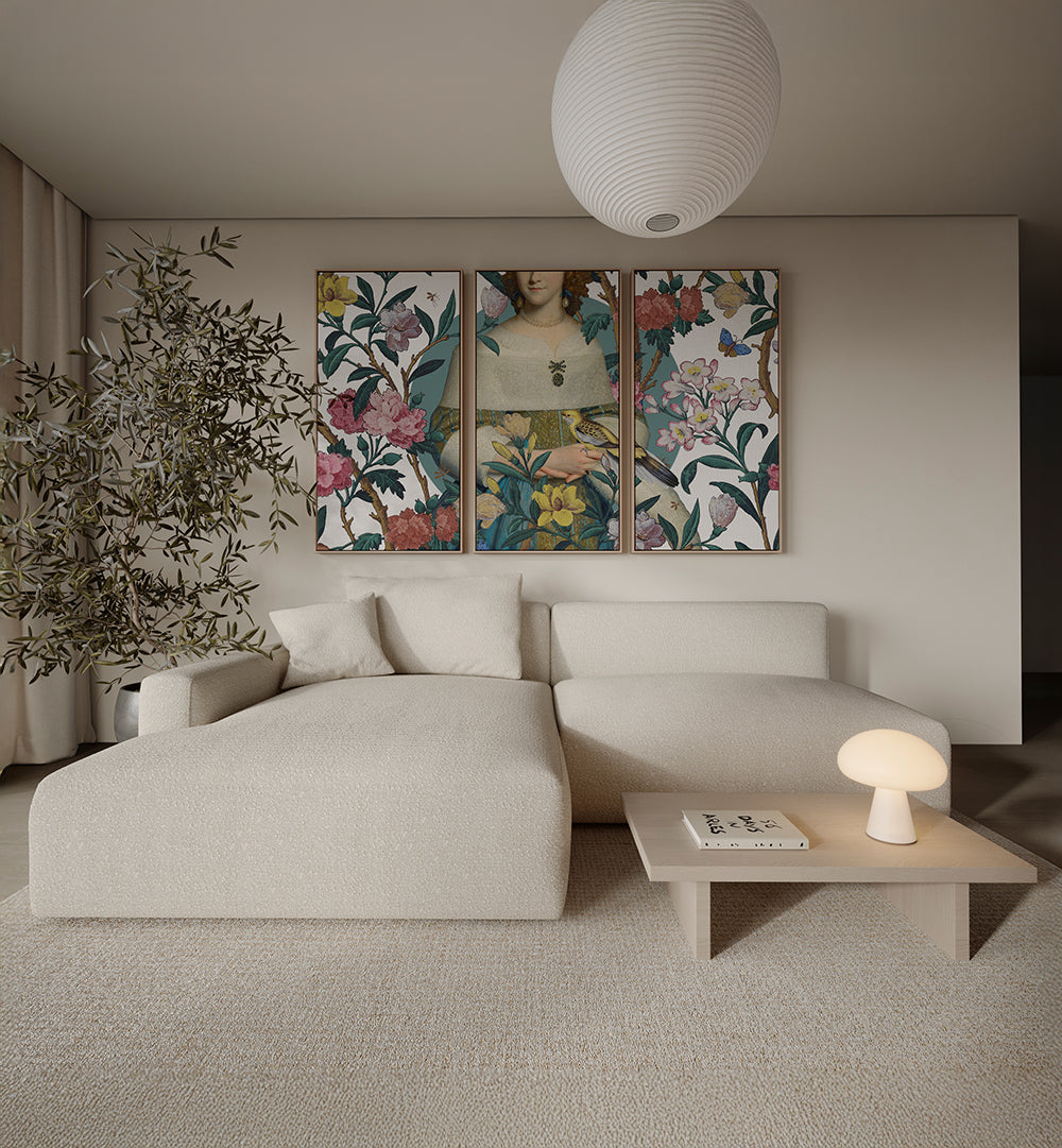 Journey through epochs with this captivating triptych — a set of 3 interconnected paintings that invites the eye to roam from panel to panel. Each piece is crafted to complement the others, creating a unified, story-driven display that enhances any wall.