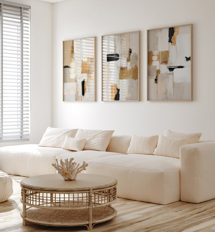 Transform your living space with the SANDSTONE SERENITY SET, SET OF 3 PAINTINGS. This exquisite collection brings a touch of calming aesthetics to any room, making it the perfect addition for those who appreciate art that speaks to the soul.