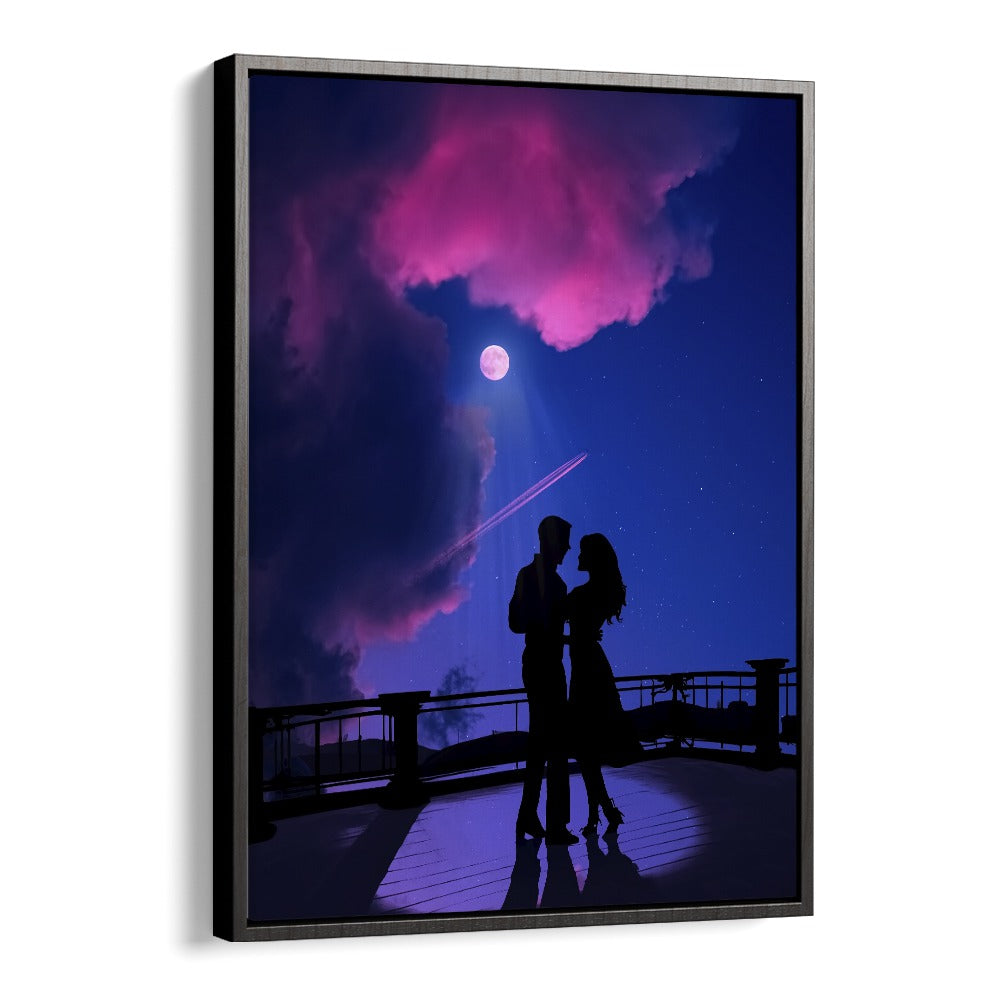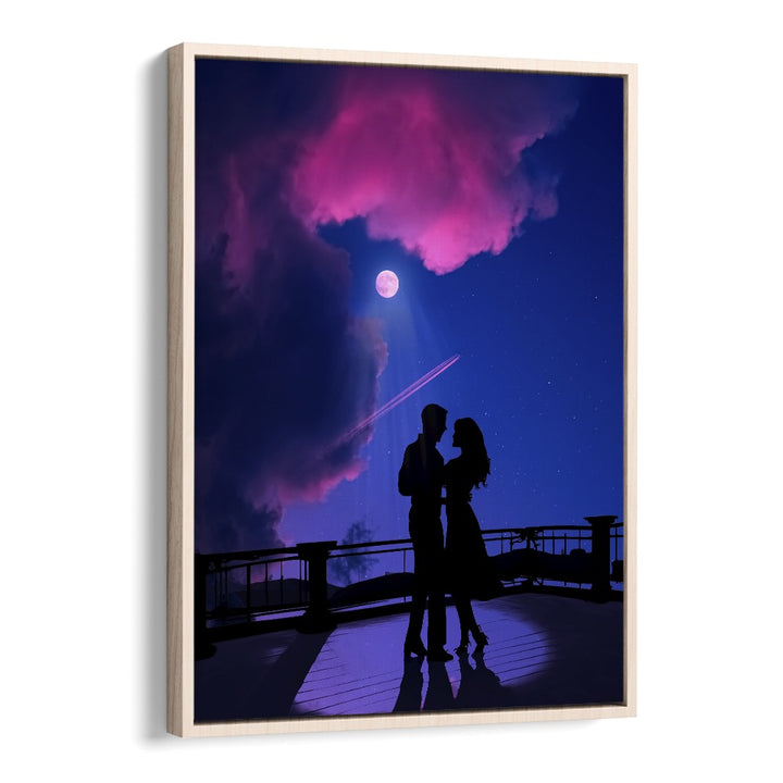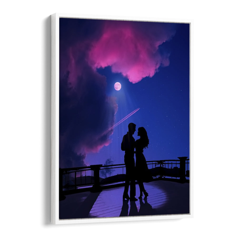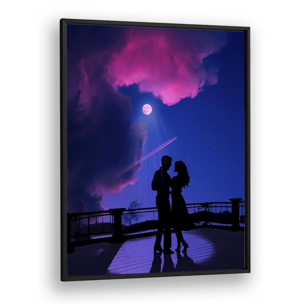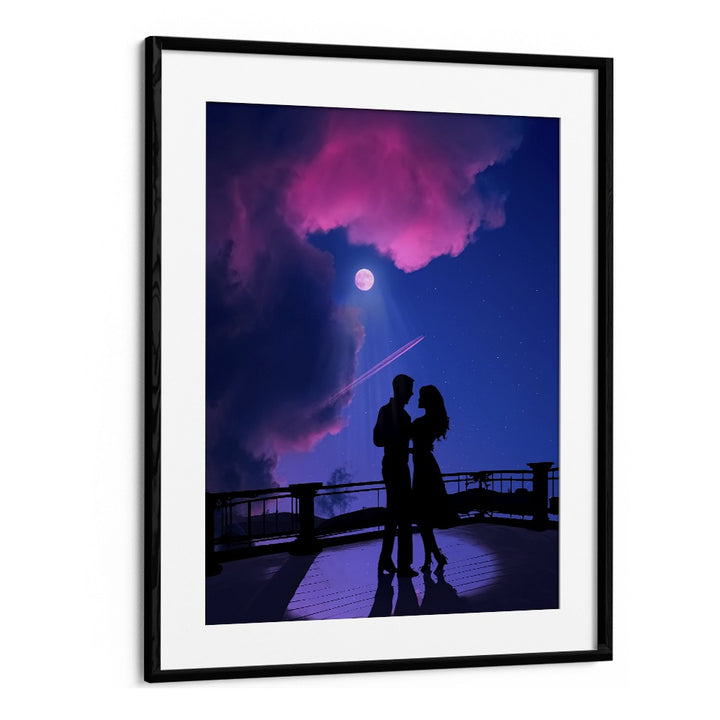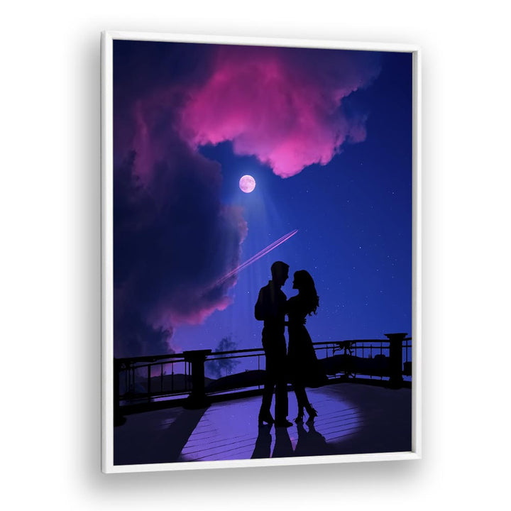 Captivating MOONSHINE WALTZ, SURREAL ART PRINTS by Ritvik Takkar, featuring a romantic silhouette against a dreamy night sky.