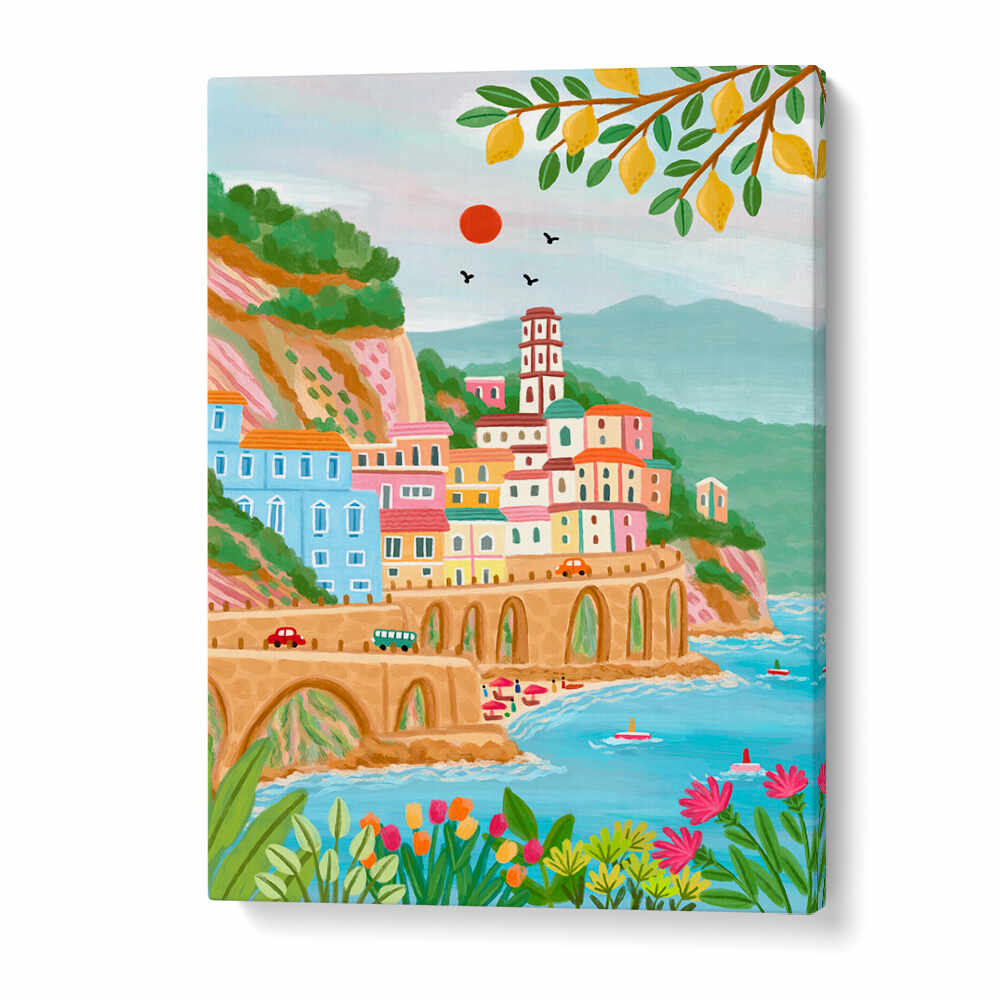 Atrani Travel Posters bring the charm of Italy's Amalfi Coast to your walls. Inspired by the coastal town of Atrani, Italy, this poster captures sunlit color, winding lanes, and pastel facades in a single, eye-catching print. Perfect for Italy wall art and Amalfi Coast decor, it's a versatile piece for any room.